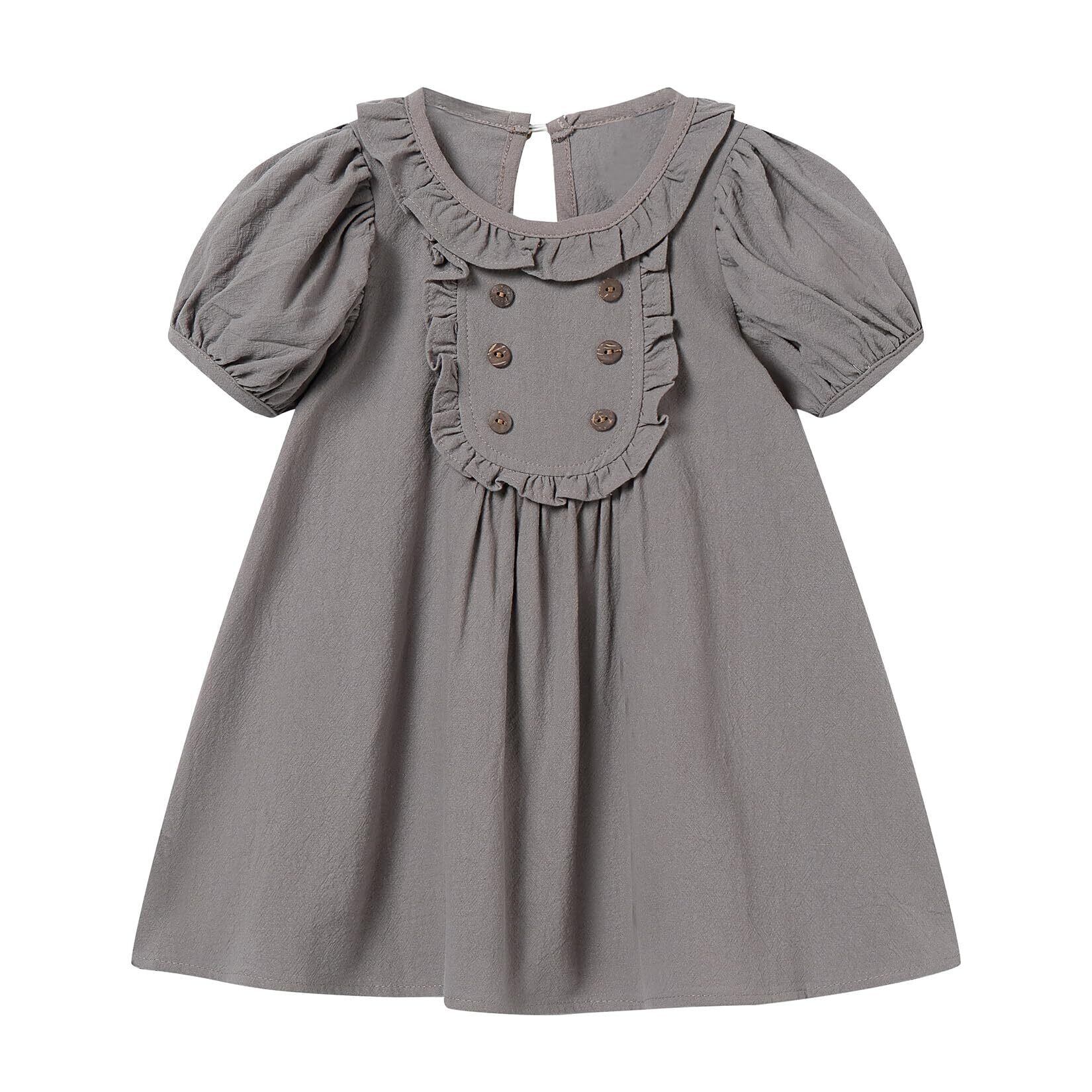 【人気商品】[LSMUDKINGDOM] ベビー ワンピース 半袖 パフスリーブ フリル 襟付き aライン 幼児用 女の子 夏