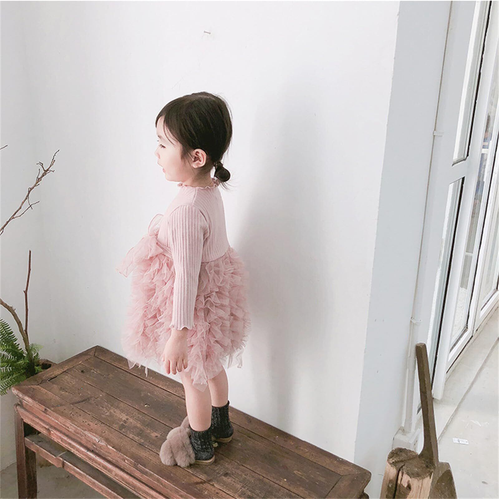 [Miipat] ベビー ワンピース 女の子 ニット チュール 長袖 秋 冬 フォーマルワンピース ベビードレス お宮参り 結婚式 誕生日 入園式 記念撮影