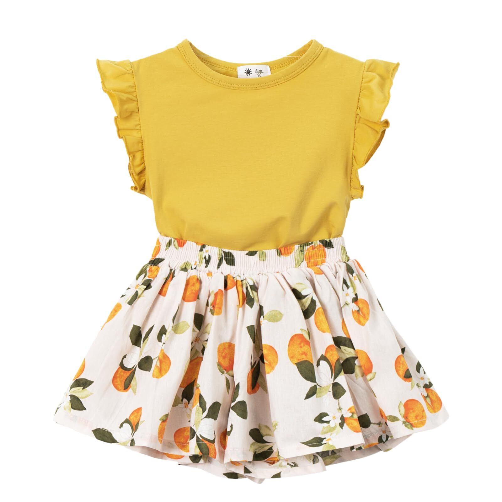 【在庫処分】[Miipat] ベビー服 女の子 セットアップ 子供服 半袖 tシャツ キュロットスカート 上下セット 夏服 トップス ショートパンツ 花柄 フリル 韓国風 可愛い 普段着 通園 通学 リゾート