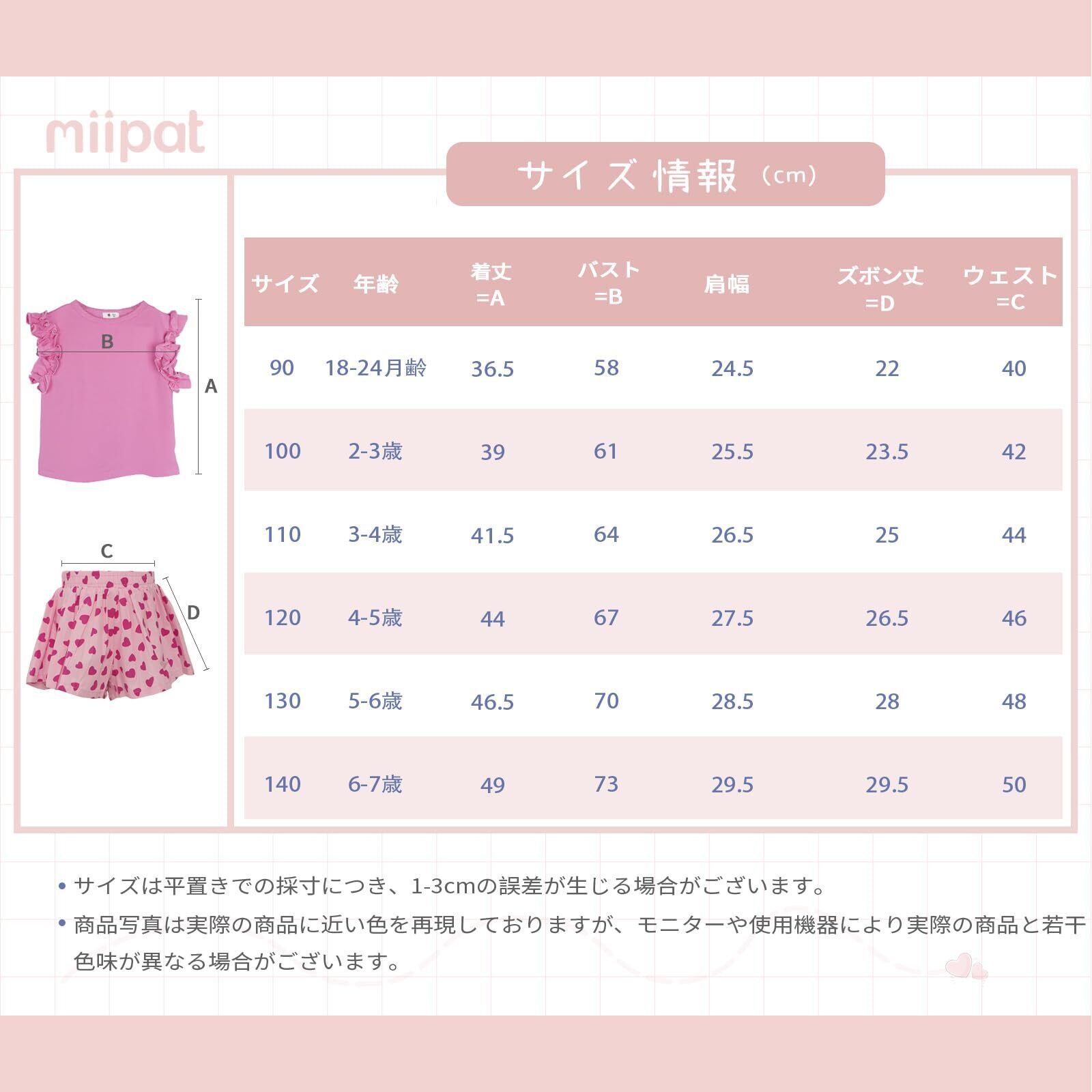 [Miipat] ベビー服 女の子 セットアップ 子供服 半袖 tシャツ キュロットスカート 上下セット 夏服 トップス ショートパンツ 花柄 フリル 韓国風 可愛い 普段着 通園 通学 リゾート