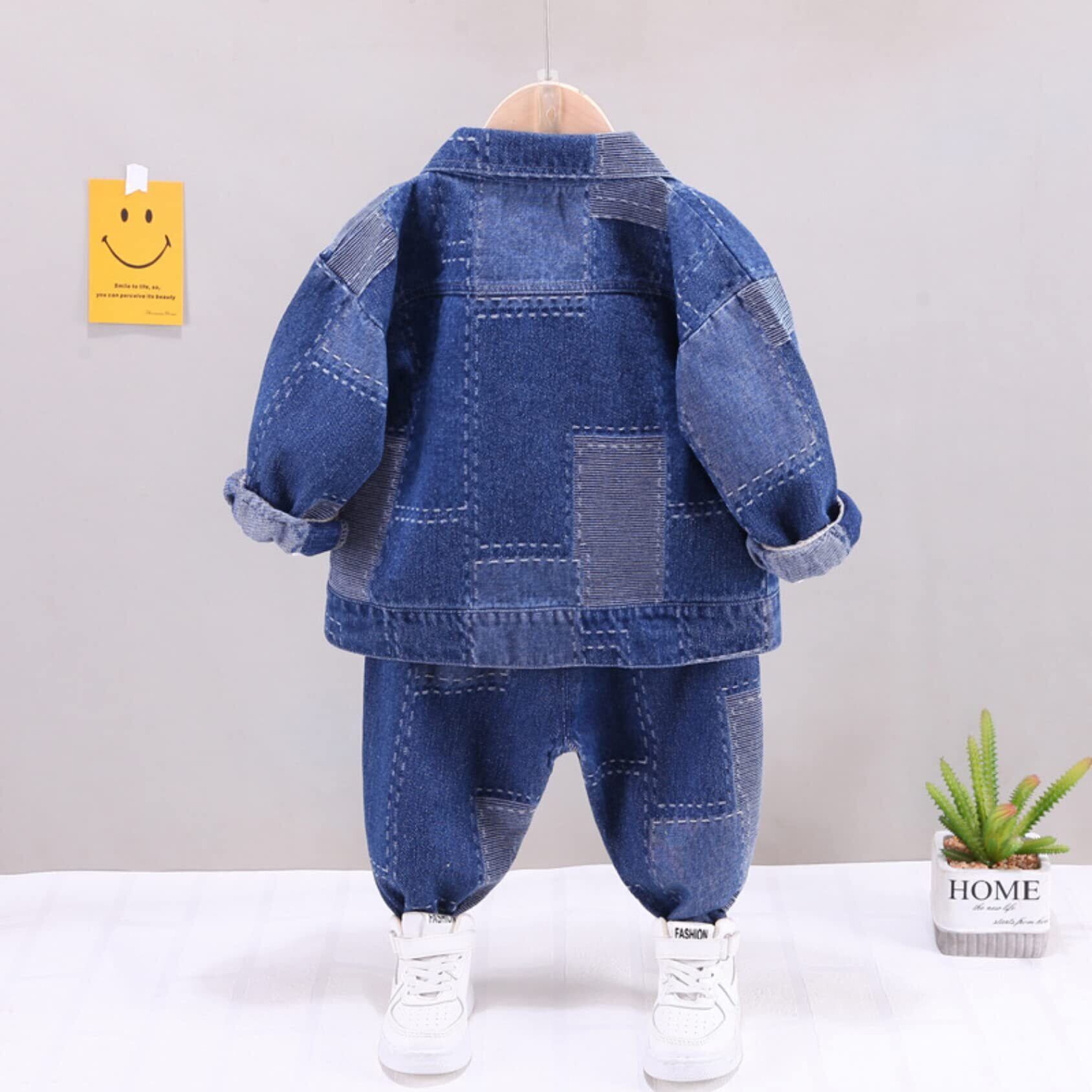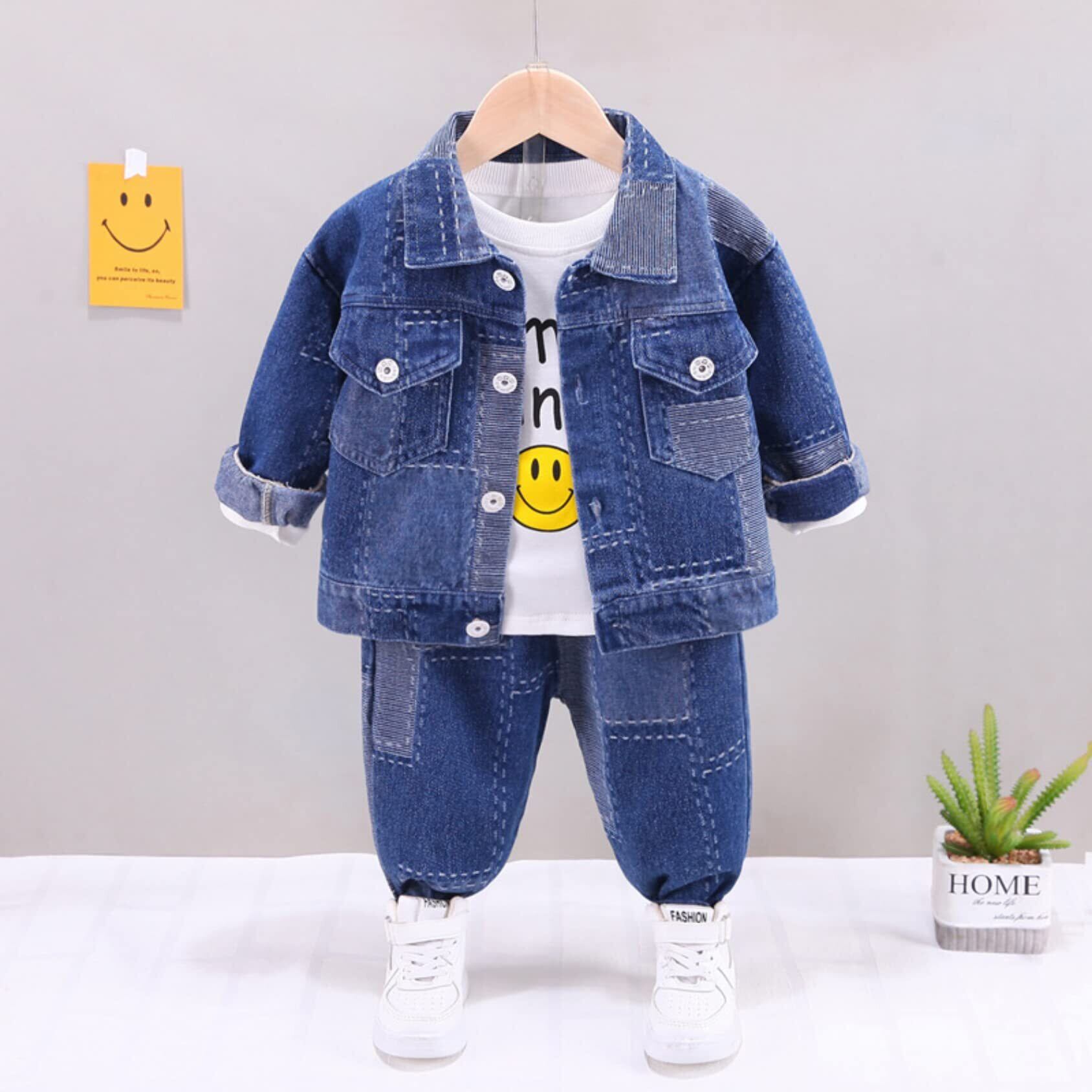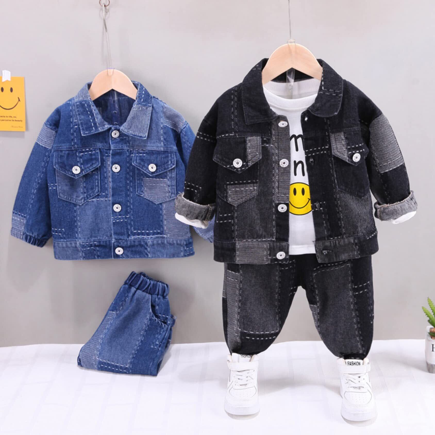 [EnDast] 3点セット パッチワークデニム 上下セット Gジャン ジーパン 長袖Tシャツ セットアップ 韓国子供服 男の子 80cm 90cm 100cm 110cm 120cm