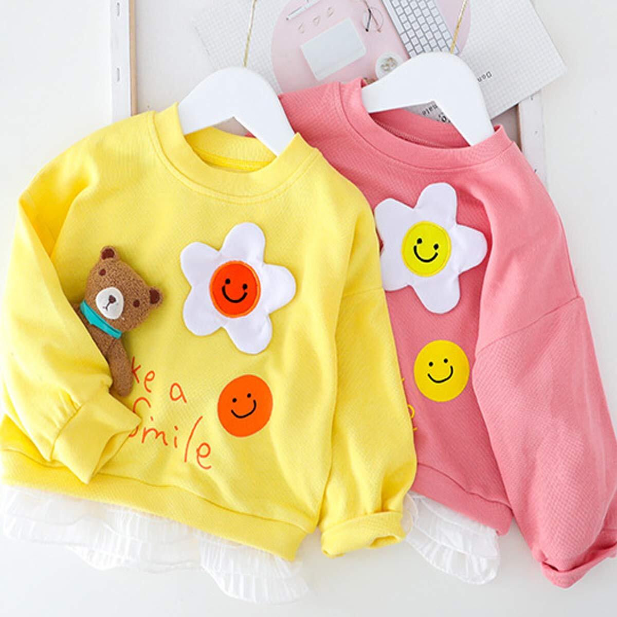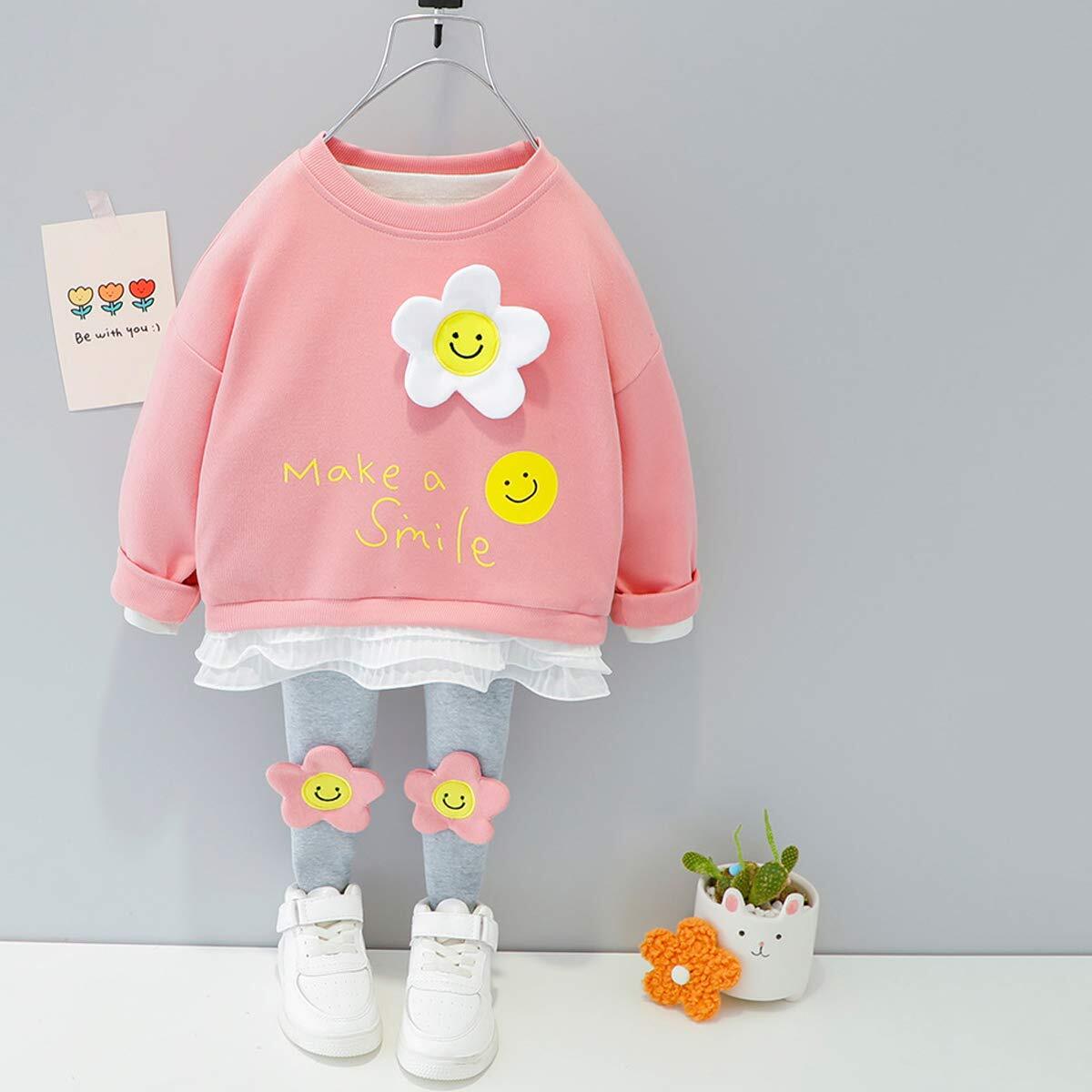 [YY-Natuhi] ベビー服 子供服 女の子 セットアップ パーカー レギンス スウェット ジャージ 笑顔 お花 明るい キッズ服 Tシャツ ズボン 女児 スポーツウェア 新生児 70~110cm 長袖 カジュアル 春 通園