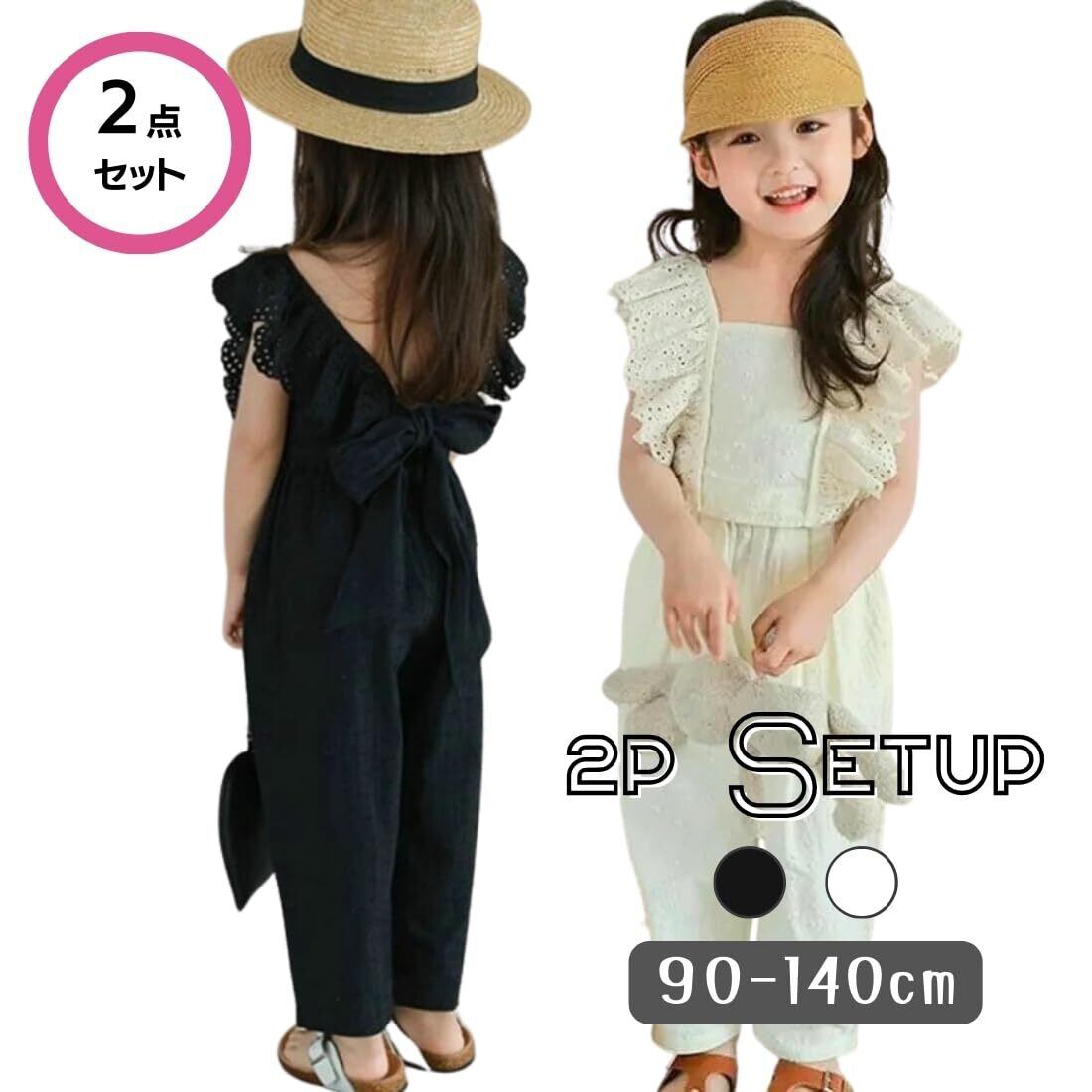 [EnDast] 2点セット 春夏 ガールズ セットアップ レースノースリーブ トップス 九分丈 さらさらパンツ かわいい カジュアル 女の子 小学生 韓国子供服 90cm 100cm 110cm 120cm 130cm 140cm