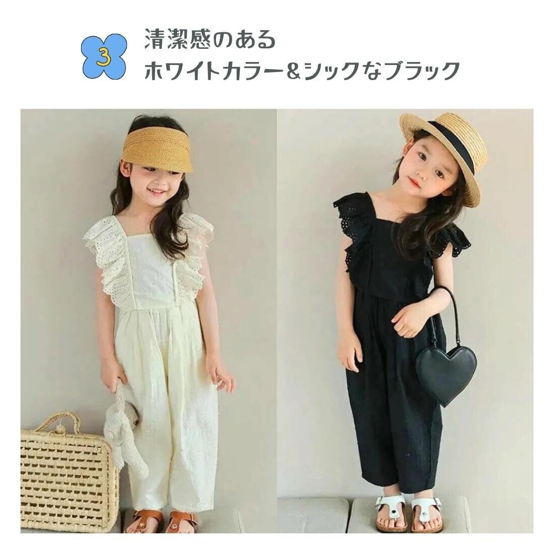 【清潔感のあるホワイトカラー&シックなブラック】オーソドックスなホワイトとブラックのカラーバリエーションはそれだけ合うシチュエーションが多いということ。お揃いのコーディネートも楽しめます。