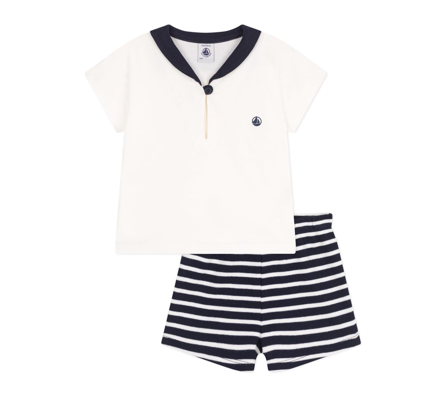 ネイビーとホワイトの組み合わせたトップスと、ボーダーのボトムスが清楚な印象のベビー2点セットです。環境にやさしい、第二の肌と呼ばれるほどやわらかく、伸縮性に優れた1×1リブ編み素材を使用し快適な着心地を実現。セーラーカラーとブランドロゴプリントがデザインのポイント。着用するだけでフレンチマリンルックが完成する、ギフトにも最適なセットです。※濃色の製品は、摩擦や洗濯の際に色落ちや色移りをする場合があります。中性洗剤で単独洗いをしてください。