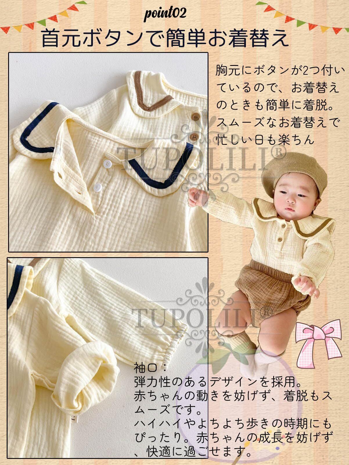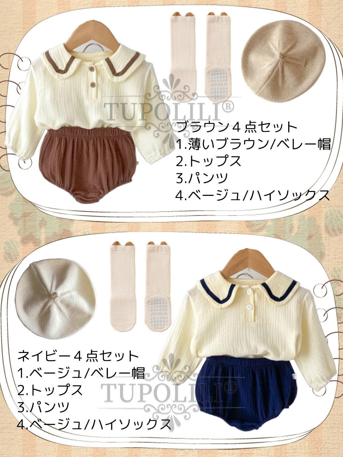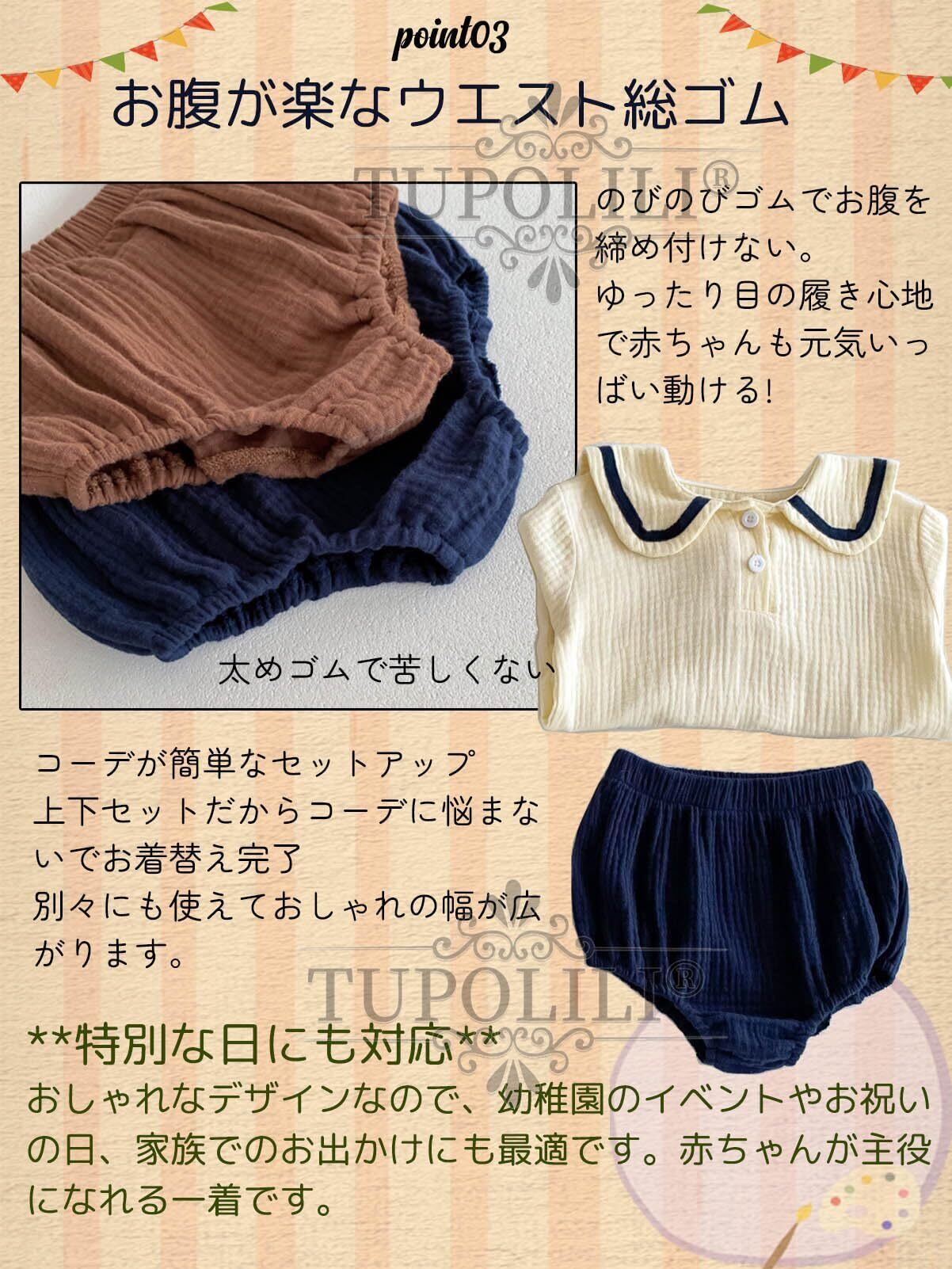 [TUPOLILI] ベビー 4点 上下セット 綿100% セーラー 襟 赤ちゃん 可愛い春 夏 秋 短パン フォーマル スーツ ナチュラル お宮参り 結婚式 保育園 幼稚園 入園 卒園 お揃いコーデ シンプル おしゃれ 記念撮影