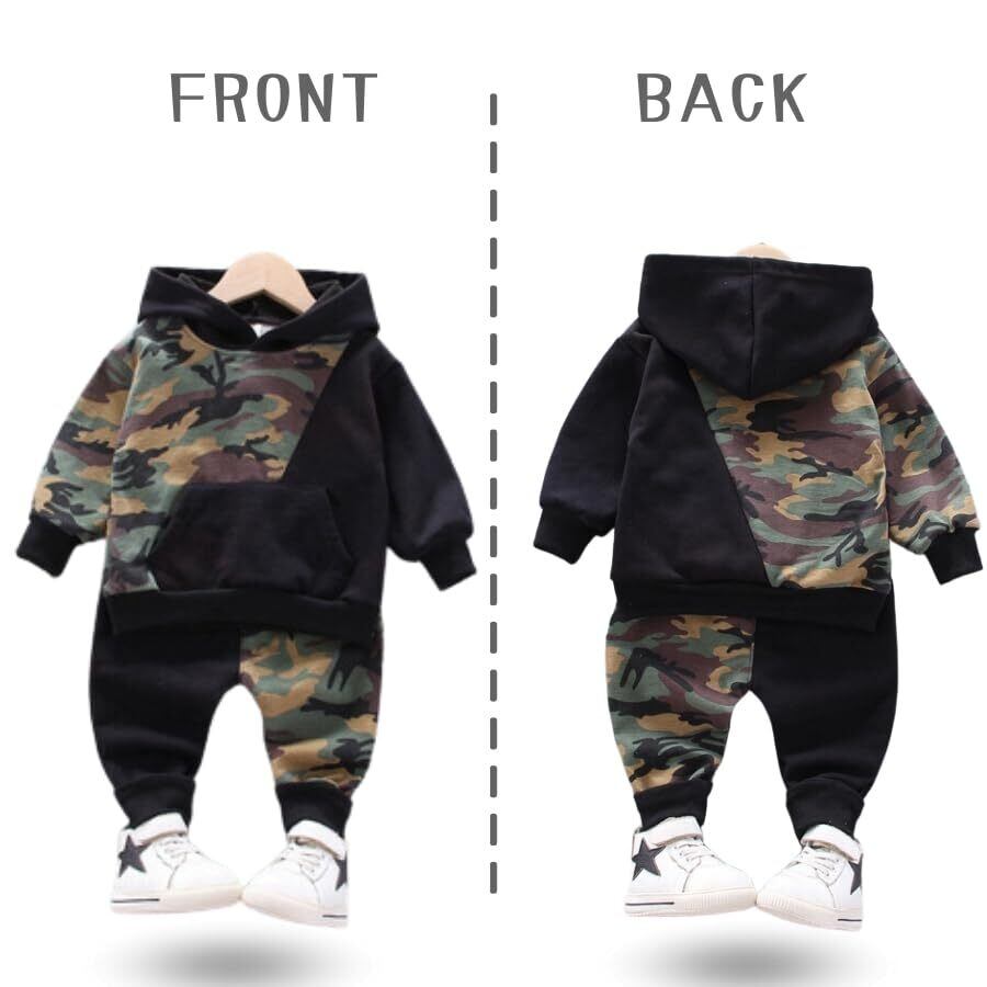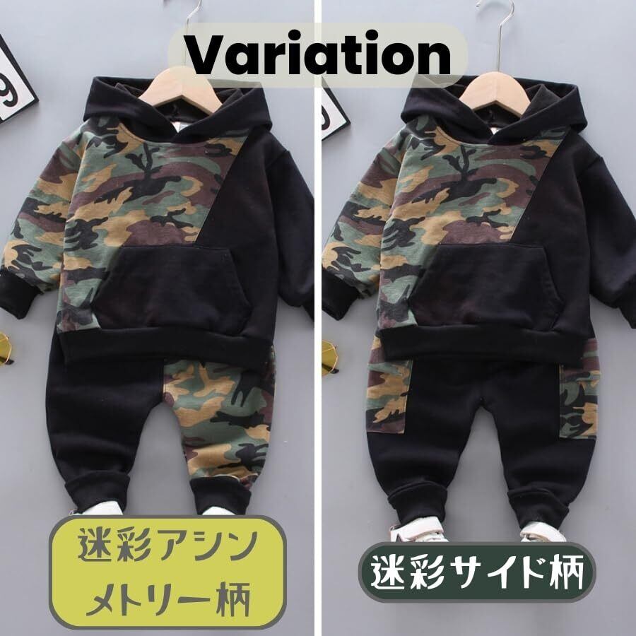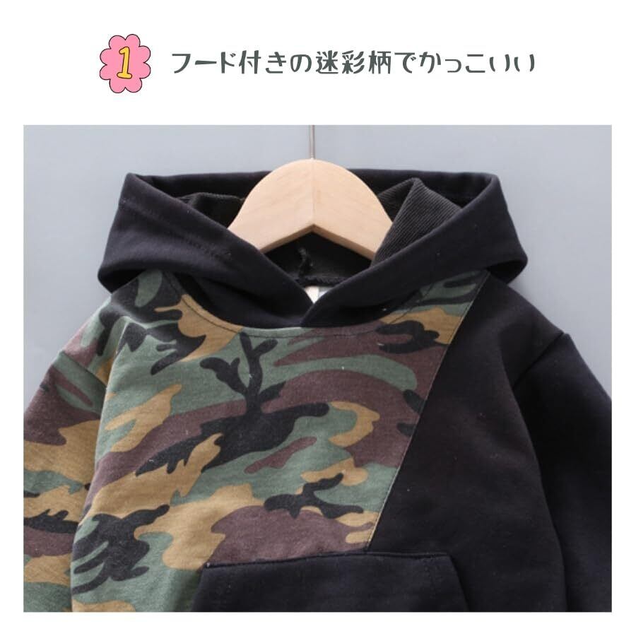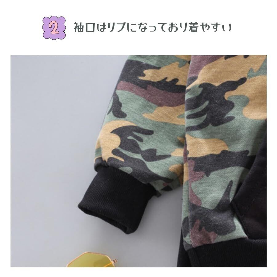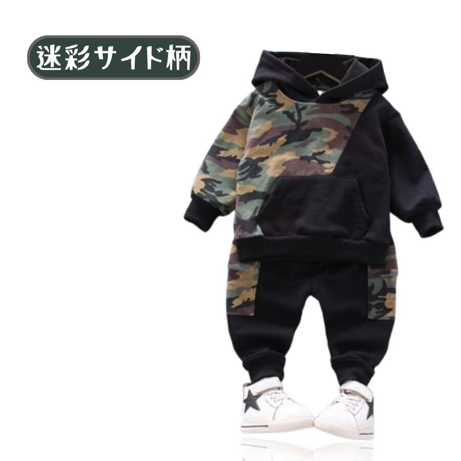 [EnDast] 迷彩柄 薄手 フード付き スウェット 上下2点セット セットアップ ミリタリー風 かっこいい 男の子 キッズ服 ダンス服 韓国子供服 80cm 90cm 100cm 110cm 120cm
