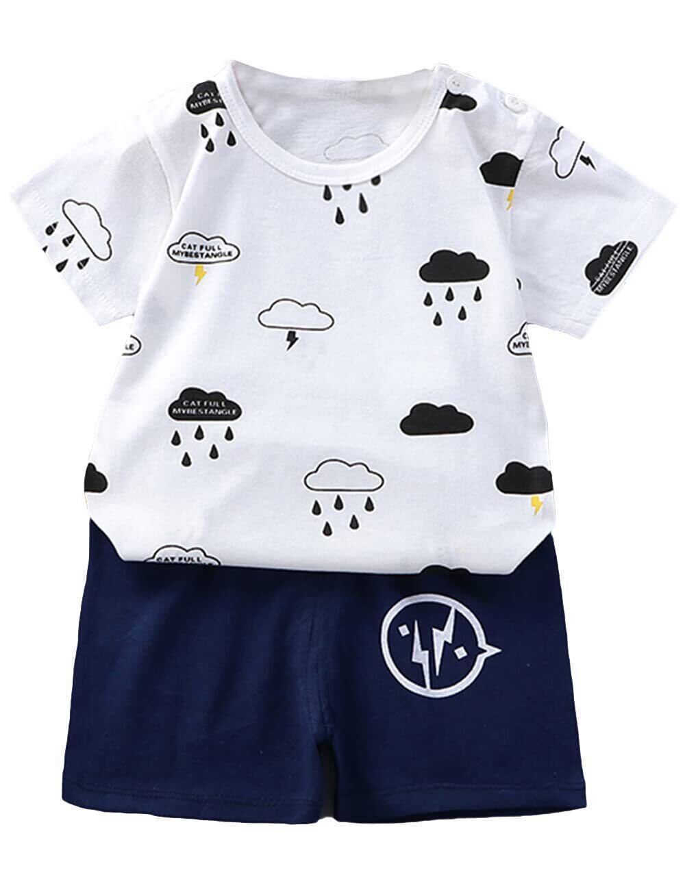 [Butrends] ボーイズ 男の子 半袖Tシャツ ショートパンツ ジャージ上下 セットアップ tシャツ 可愛い 短パン 上下セット 夏 フリル 半袖Tシャツ&花柄 ショートパンツ 2点セット 90-120