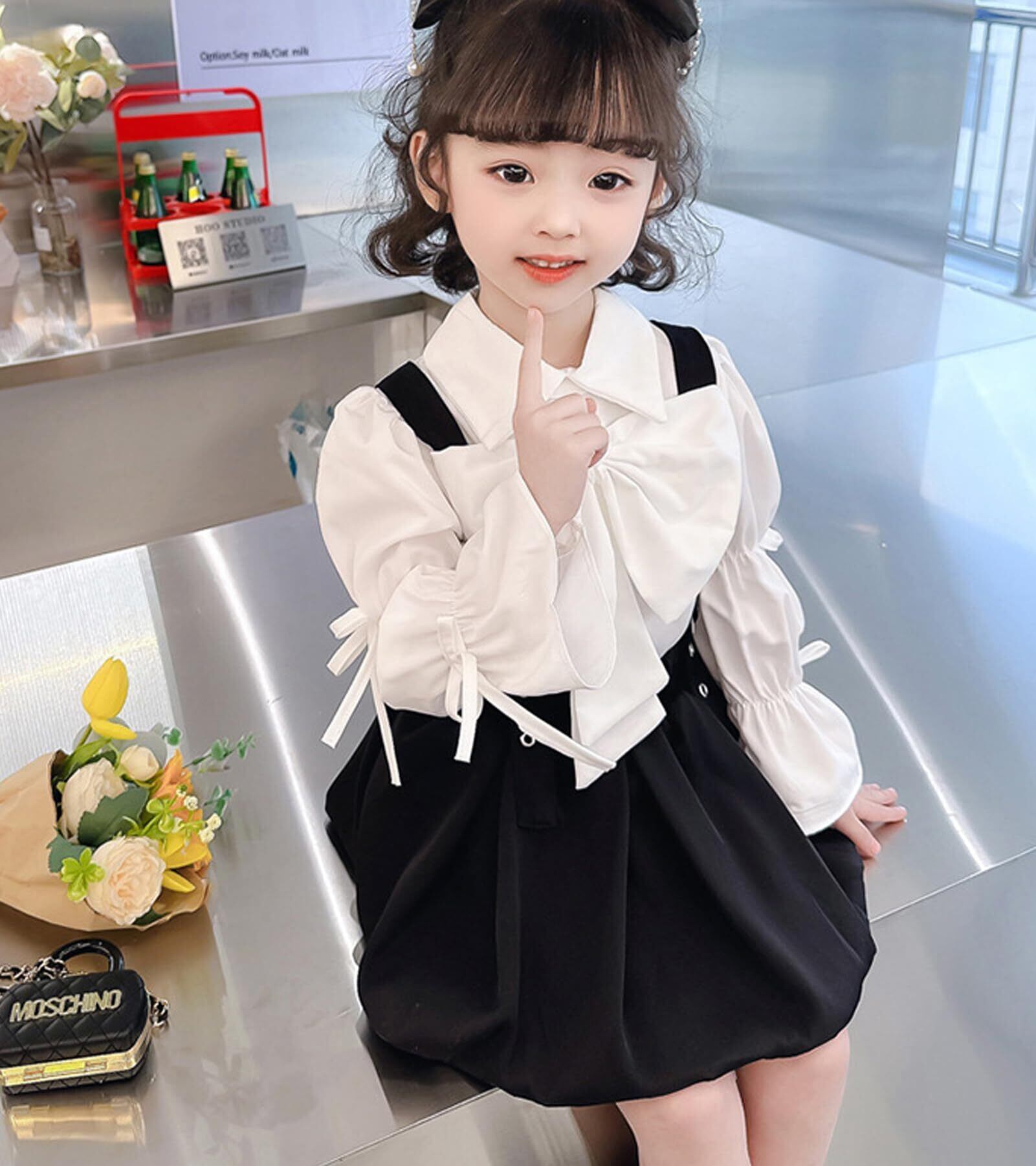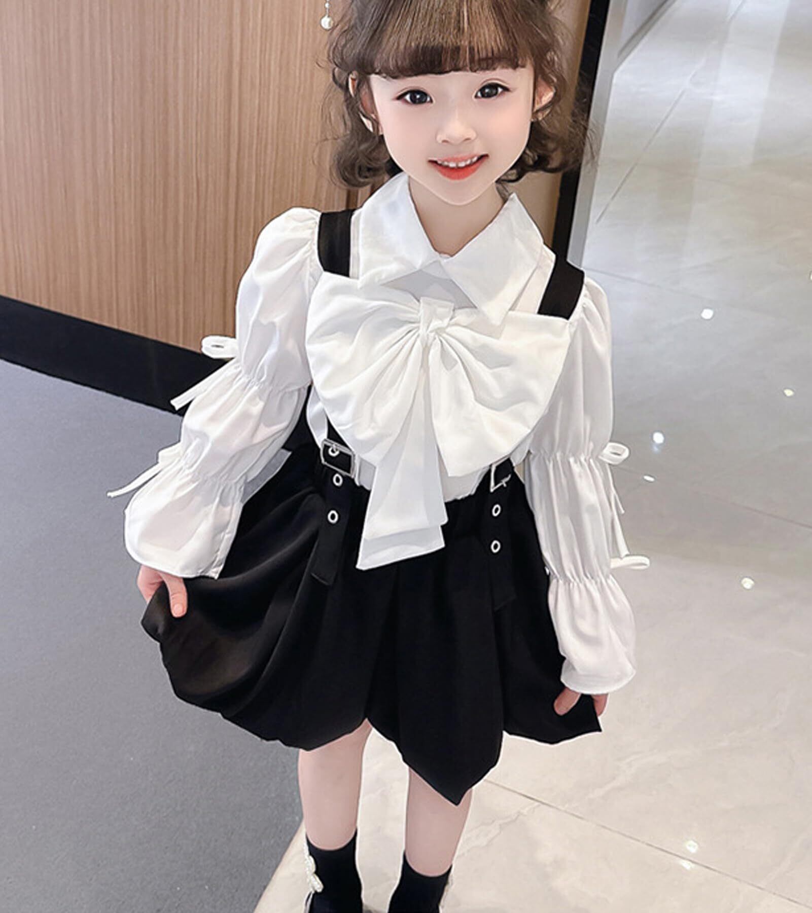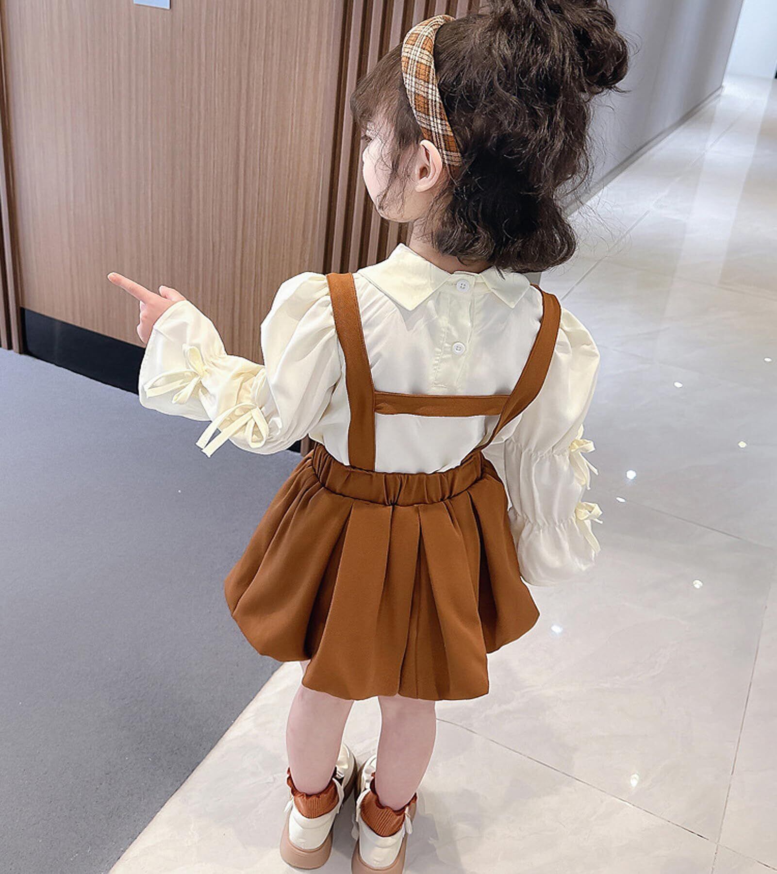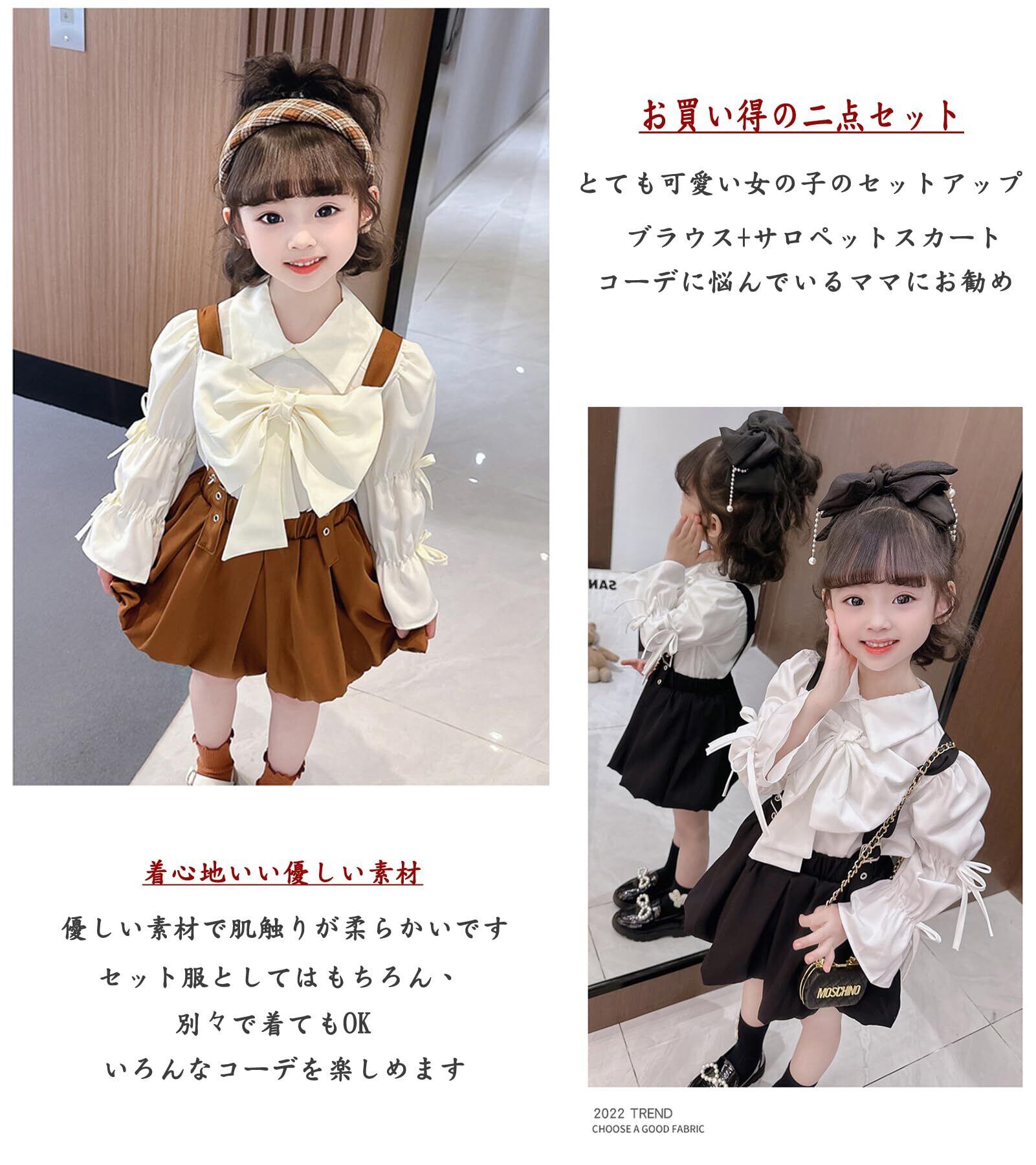 [YY-Natuhi] 子供服 女の子 セットアップ ブラウス シャツ 長袖 サロペット スカート リボン トップス ワンピース ベビー キッズ 女児 90-130cm可愛い フォーマル 春秋冬 通園 通学 発表会