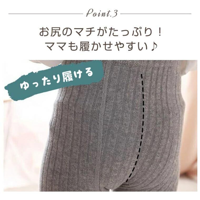 【抜群の伸縮性&股上深め】このベビーレギンスは優れたストレッチ性で、履きやすい。お尻のマチが広いデザインなので、おむつの上からでも楽に着用できます。動きやすく、快適な着心地が続きます。
