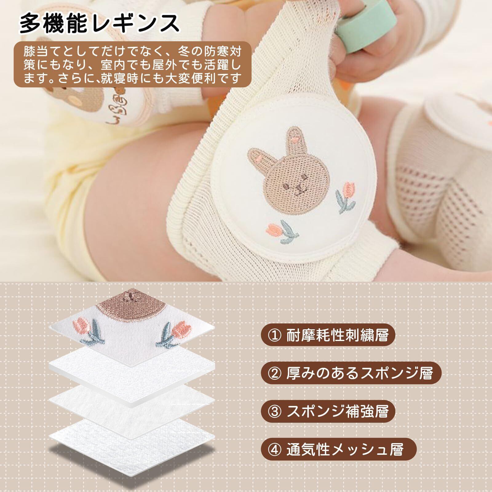 ✨【赤ちゃんの膝を優しくケア】ハイハイや歩き始めの赤ちゃんのデリケートな膝を、地面との擦れや転倒時の衝撃から守ります。薄くて高密度のクッション材を使用し、内層には厚手の高密度スポンジクッションパッドを採用することで、乳幼児の膝を最適に保護します。