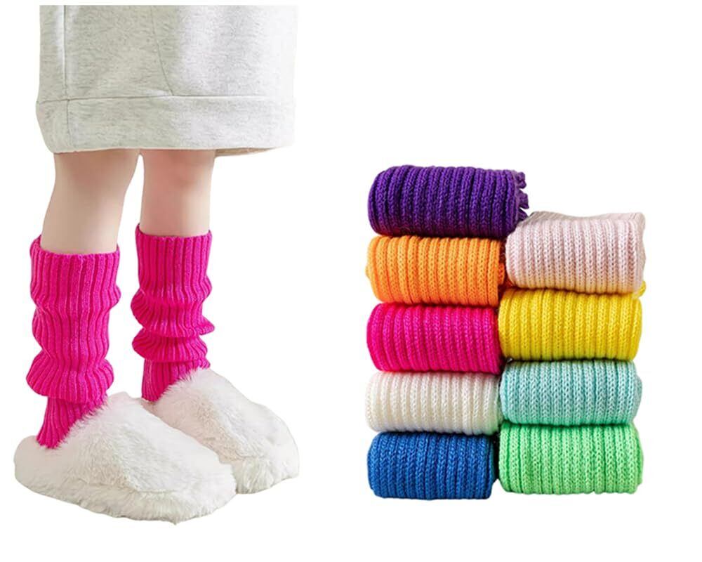 [Lettyhe] 子供 ガールズ 女の子 カラフル レッグウォーマー ニット ネオンカラー ルーズソックス 蛍光 派手 ダンス 衣装 暖かい フリーサイズ 小学生 中学生