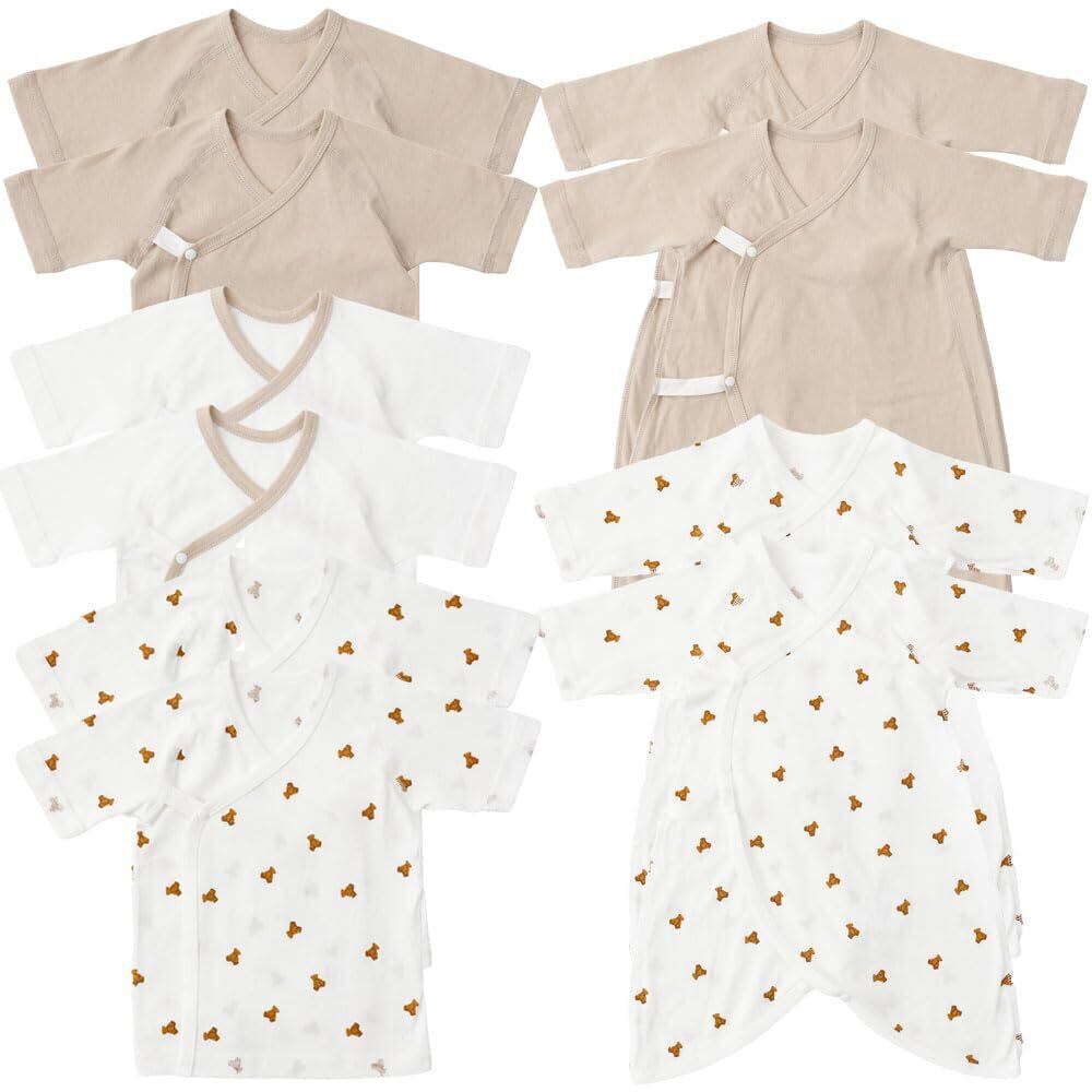 【2022最新】[アイリスプラザ] 10枚組 (短肌着 6枚 コンビ肌着 4枚) 新生児 肌着 ベビー肌着 ベビー服 くま(グレージュ)