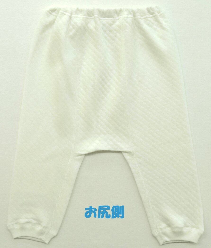 素材から縫製までこだわった日本製の肌着です。生地と生地の間に綿が入った保温性抜群のニットキルト素材の生地を使用し、フラットシーマ(平縫い)縫製で縫い目のゴロつき感が少なく、ゆったりサイズに仕上げています。防寒対策にズボンの中にはかせてあげるアイテムですが、パジャマのズボンとしてご使用するという方もおられます。ウエストゴム取替え口付。