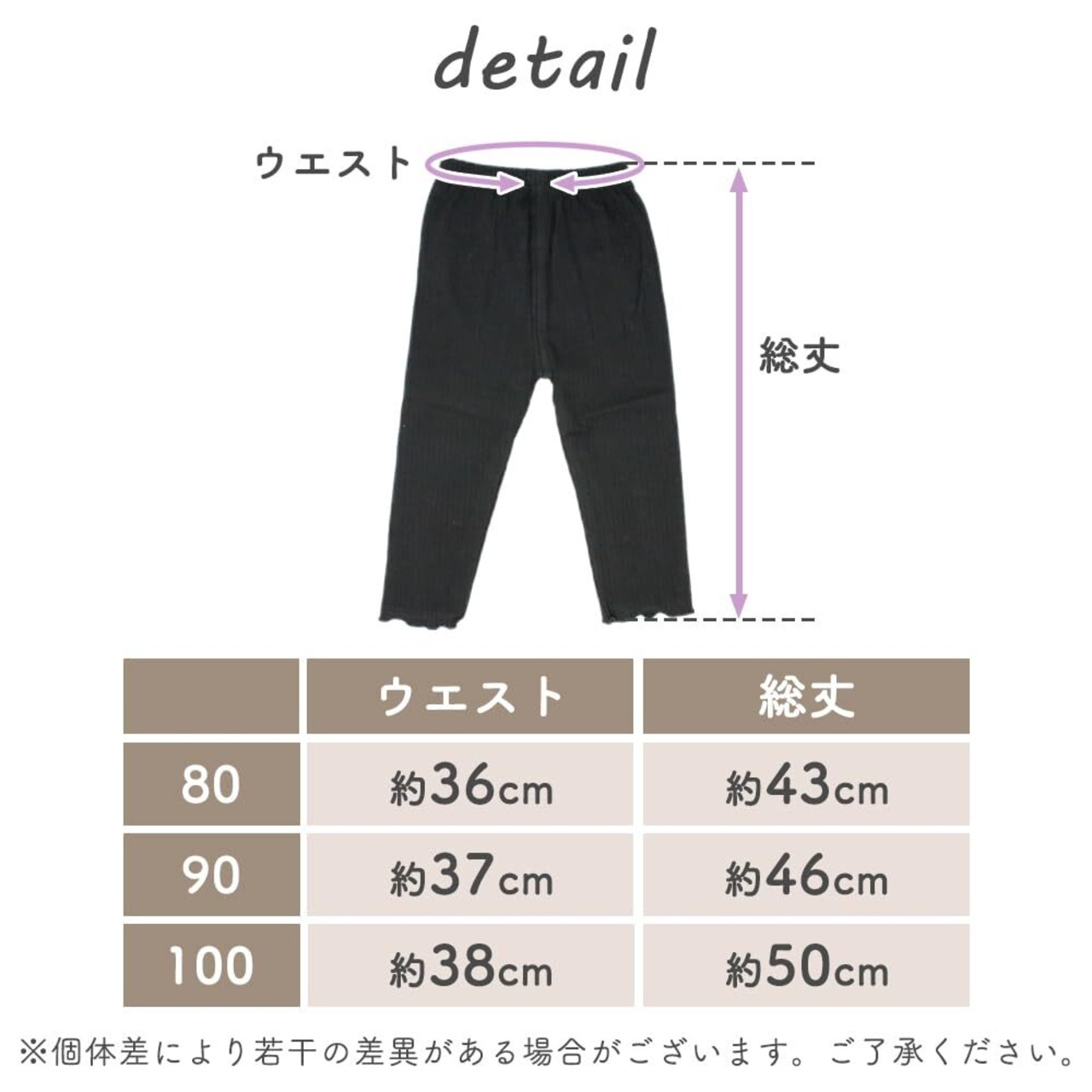 ベビー用フリル付きレギンス2枚セット:かわいいフリルデザインのレギンスが2枚セットになっています。80cm、90cm、100cmのサイズ展開で、成長に合わせて選べます。