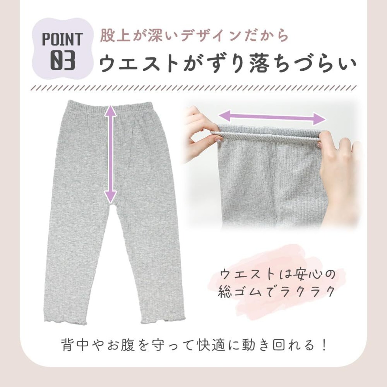 柔らかいコットン素材:肌に優しい綿(コットン)素材で作られており、赤ちゃんのデリケートな肌にも安心。春夏の着用に最適です。伸びる素材で動きやすく、スポーツや遊び、日常の動作をサポート。保育園や幼稚園でも快適に過ごせます。