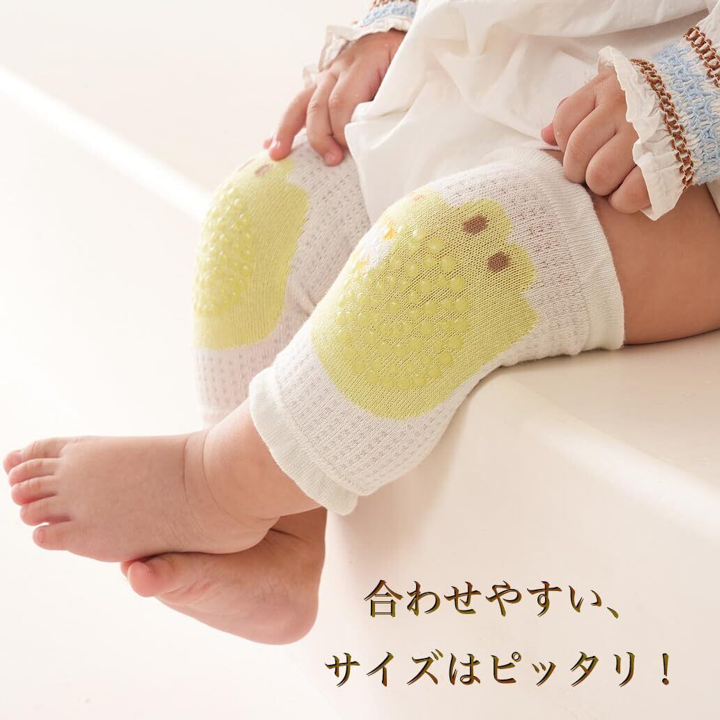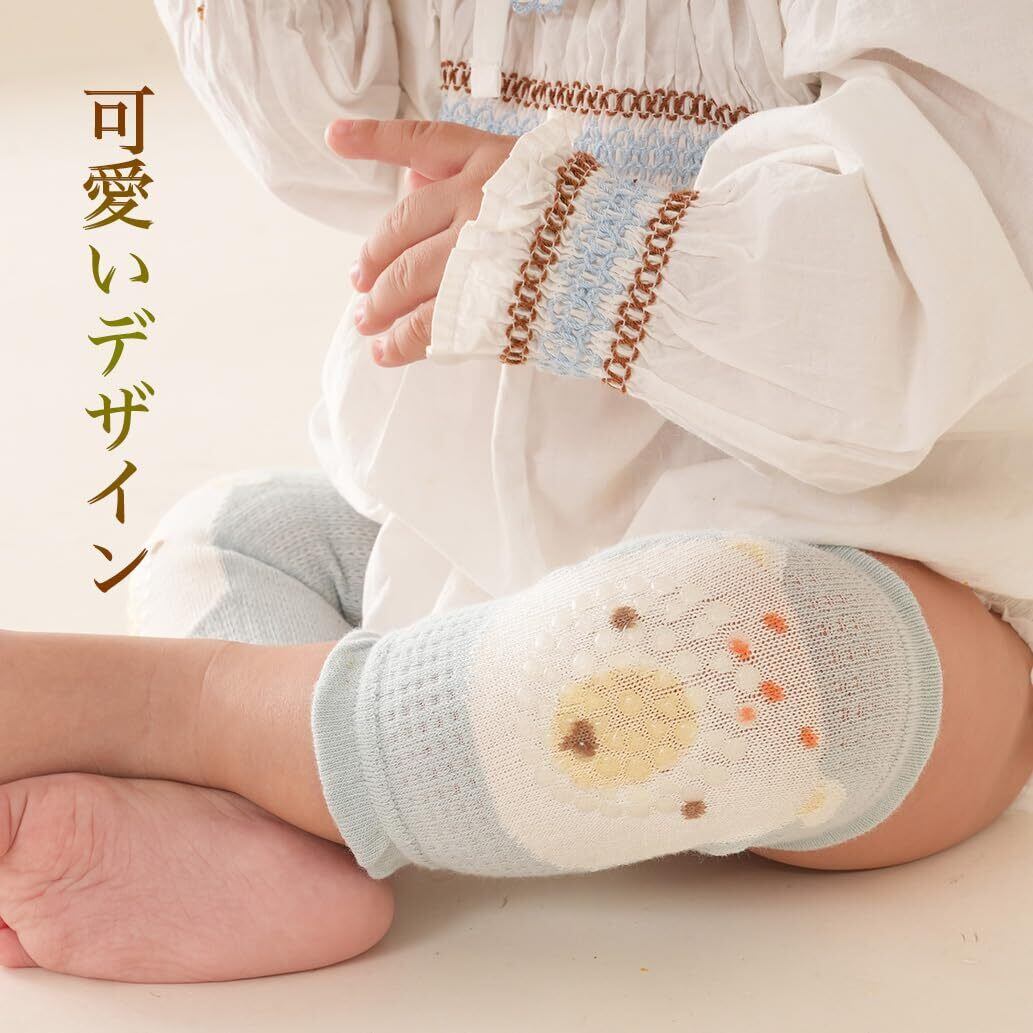 可愛らしいデザインが特徴で、赤ちゃんの膝を擦りむきから守るための滑り止め機能も備えています。