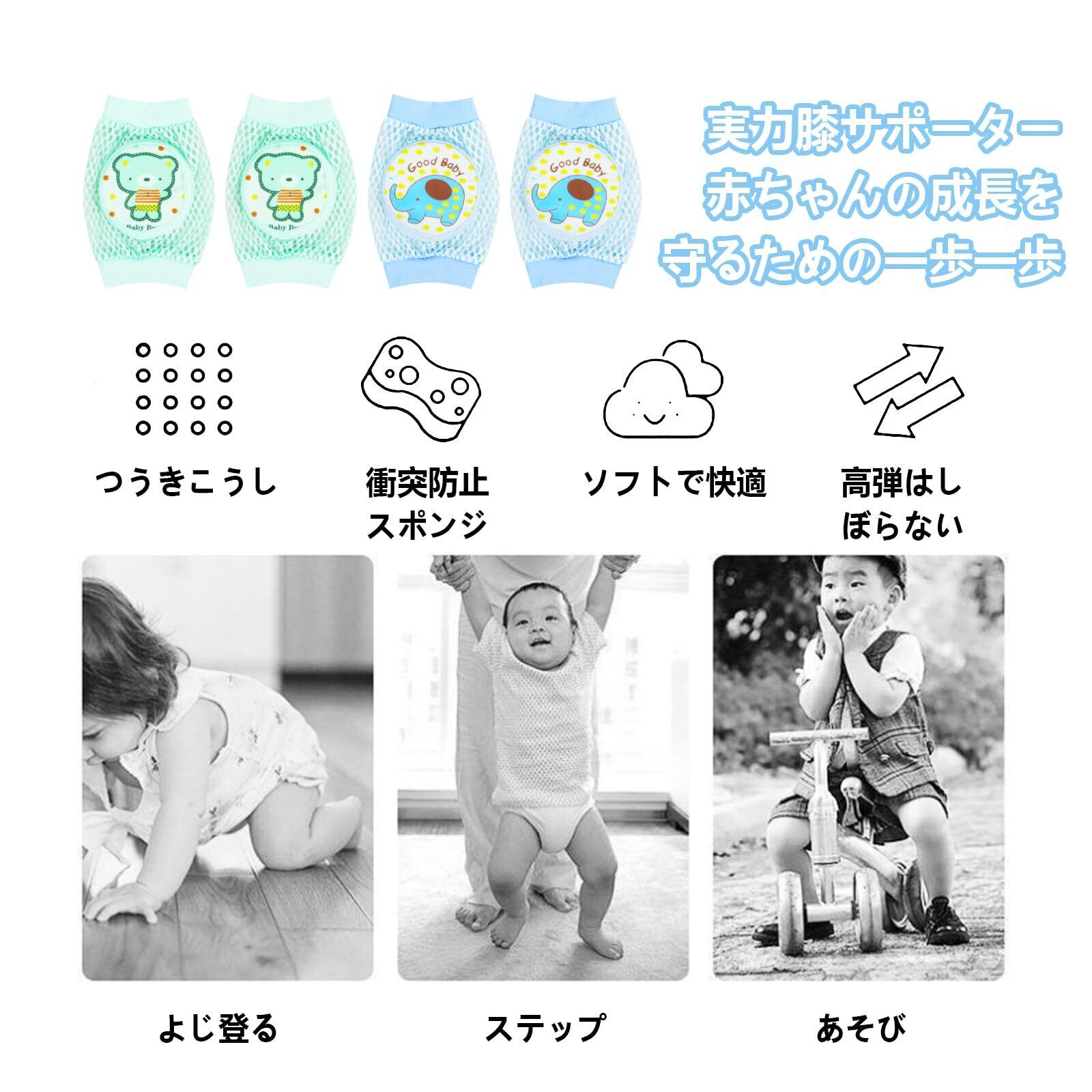 「適用場合」これらの膝パッドは赤ちゃんのいるご家族に最適で、赤ちゃんが周囲の世界を探索する際に快適さと保護の両方を提供します。室内のでも屋外でも大活躍合わせやすいの膝当て、適し学爬行、歩きの赤ちゃんが適用です。