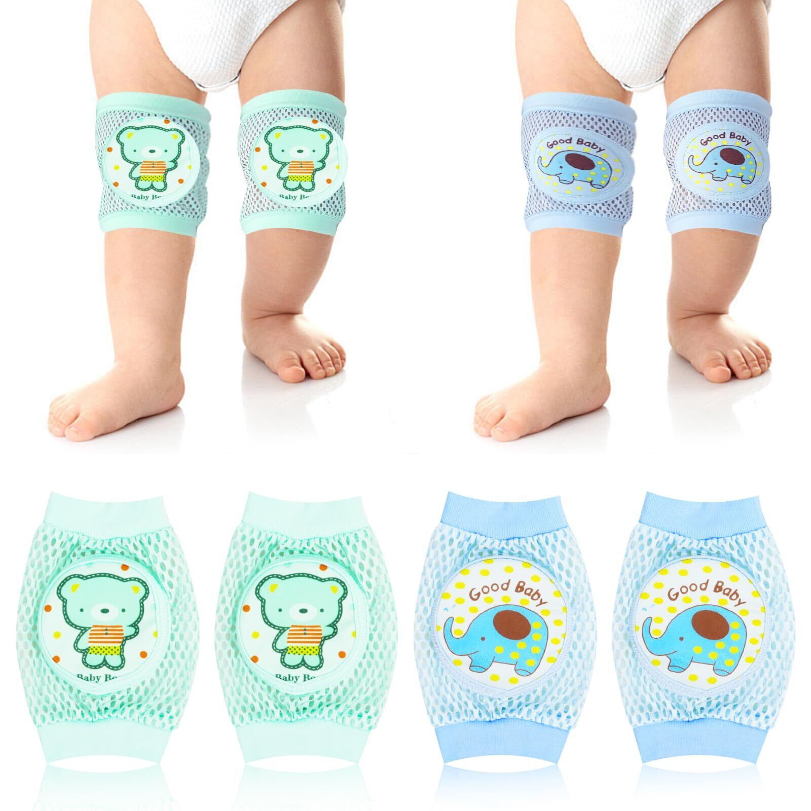 [siawadeky] ベビー ニーパッド 夏 赤ちゃん ひざあて 2足セット かわいい 象 くま 柔らかい綿 通気性 擦りむき防止 滑り止め 歩行勉強 怪我防止 冷房対策 膝当て 男の子 女の子 室内外対応