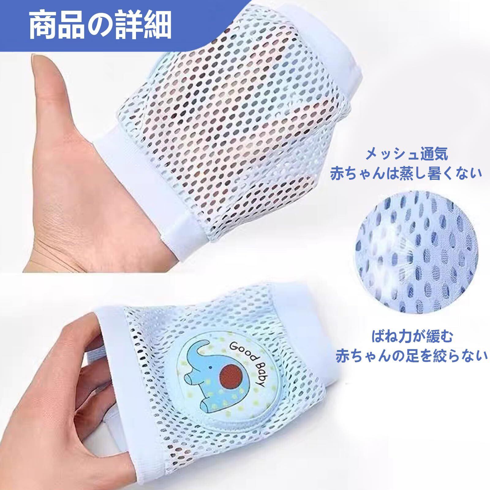 「商品仕様」素材:綿、サイズ:90*138mm、数量:2足セット、カラー:ブルー+グリーン、0-3歳の赤ちゃんに非常に適用しております。