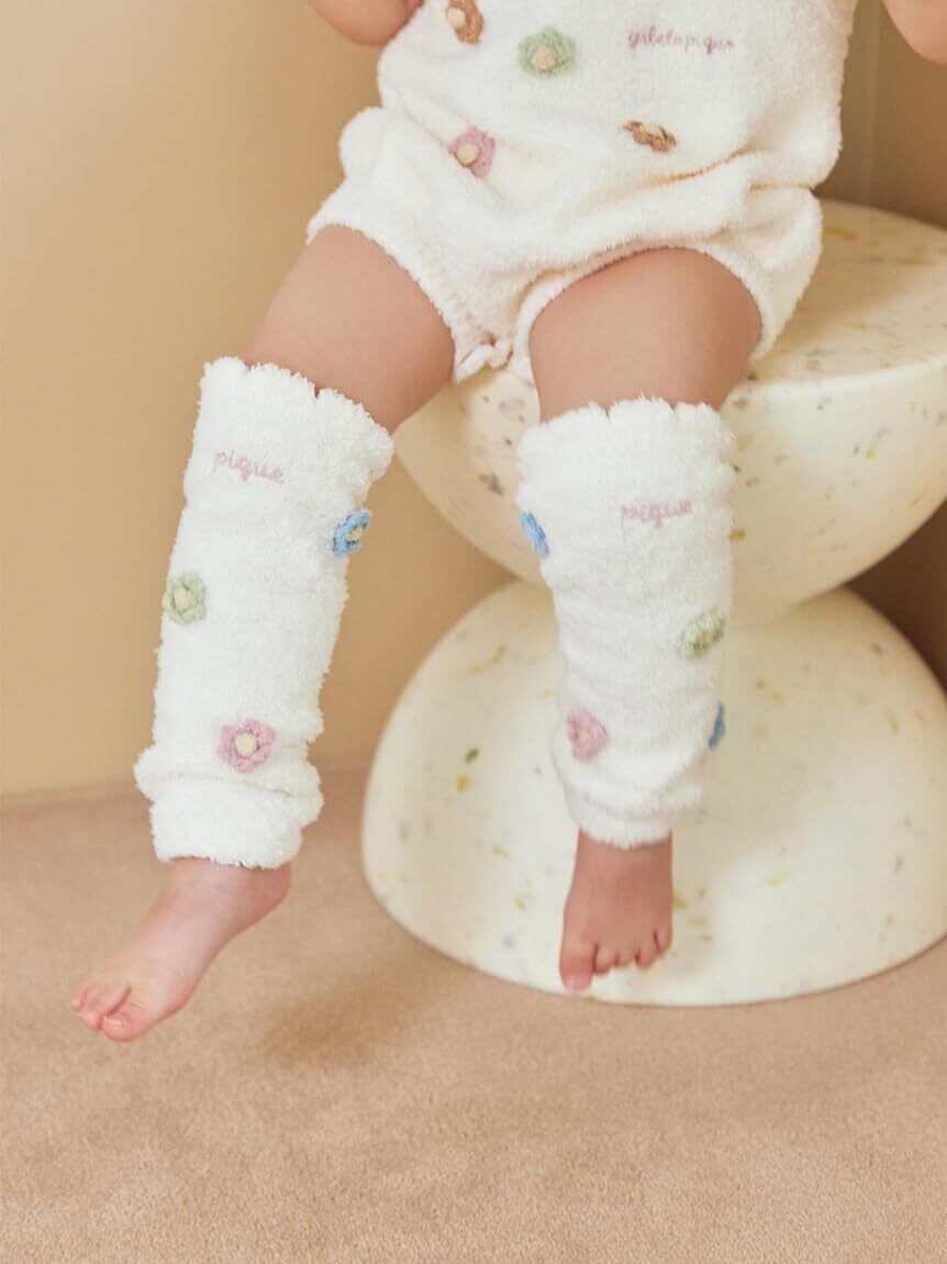 【立体的なお花を散りばめたベビモコBABYレッグウォーマー】