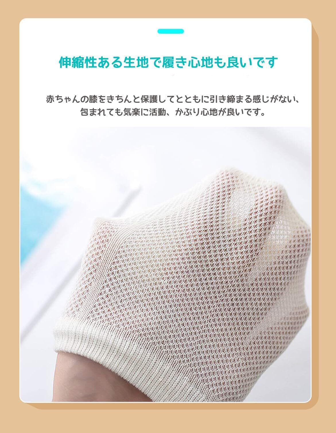 良い伸縮性:伸縮性ある生地で履き心地も良いです。赤ちゃんの膝を優しく包み込まれて、さらに、赤ちゃんの膝をきちんと保護してとともに引き締まる感じがない、包まれても気楽に活動、かぶり心地が良いです。