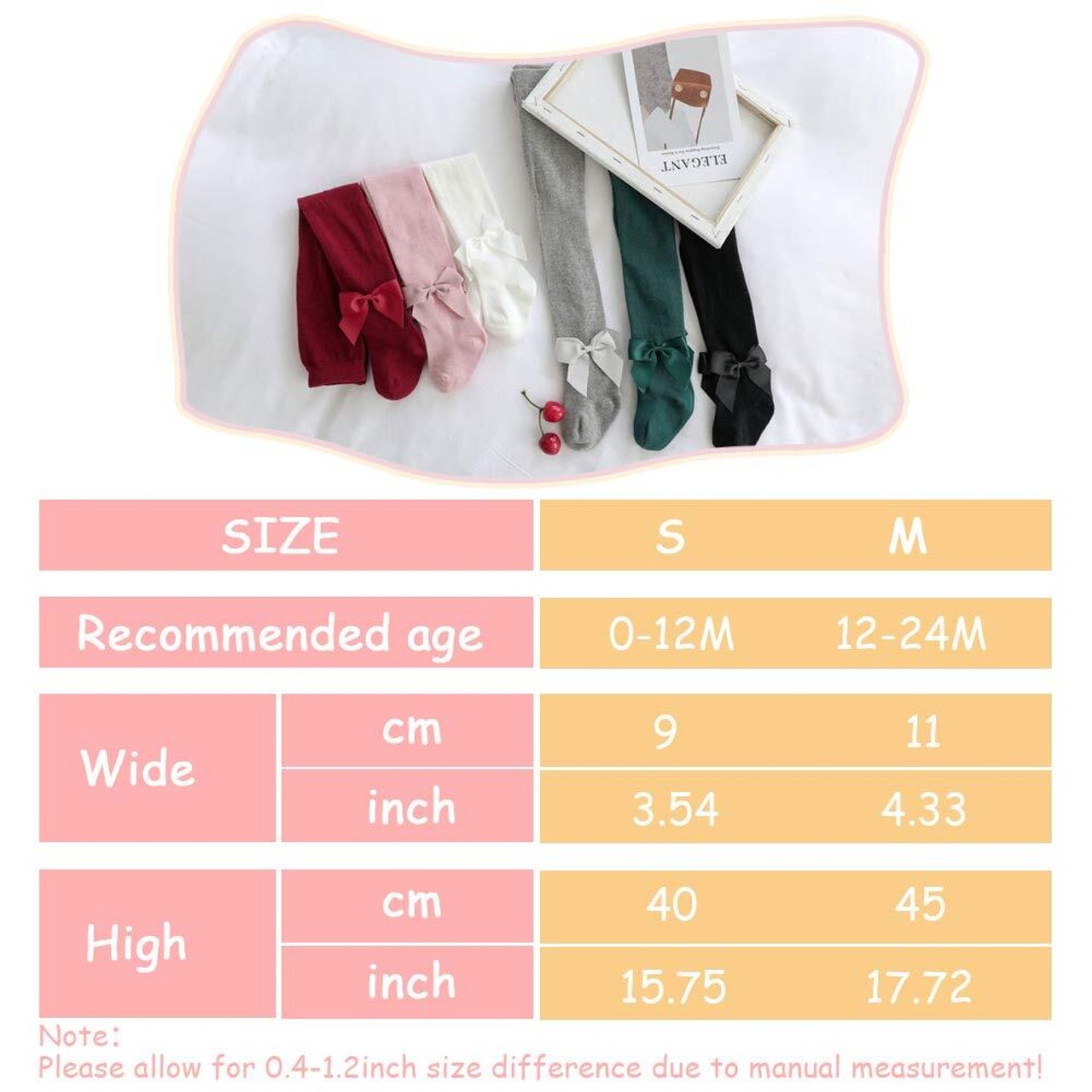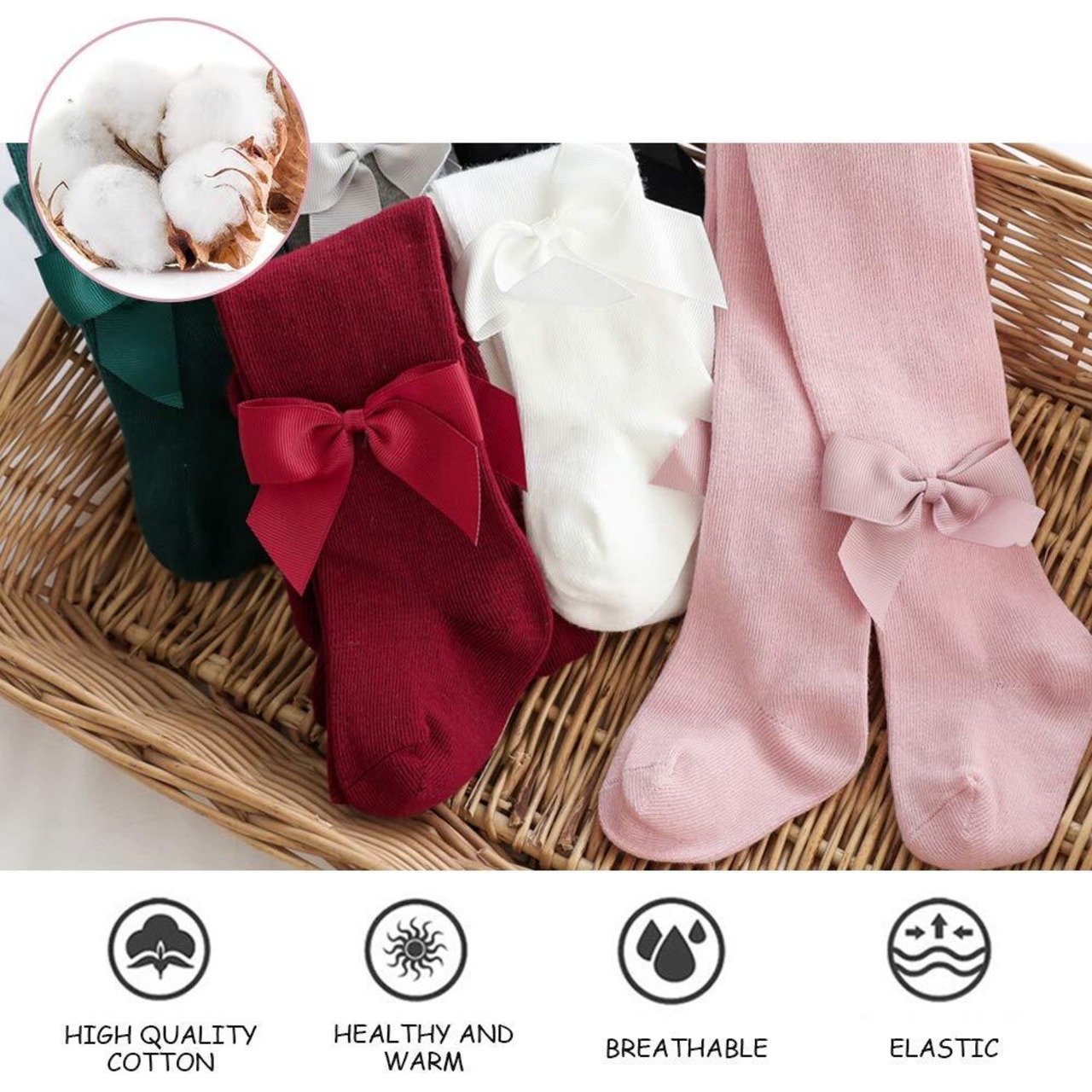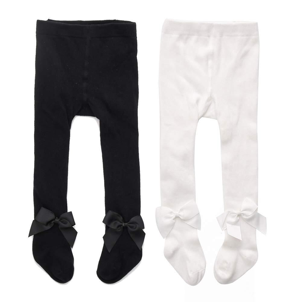 [Happy Cherry] ベビータイツ 赤ちゃん 女の子 女児 お姫様タイツ 蝶結び付き 綿 柔らかい 吸汗通気 お出かけ 防寒 冬 2足セット 0-1歳