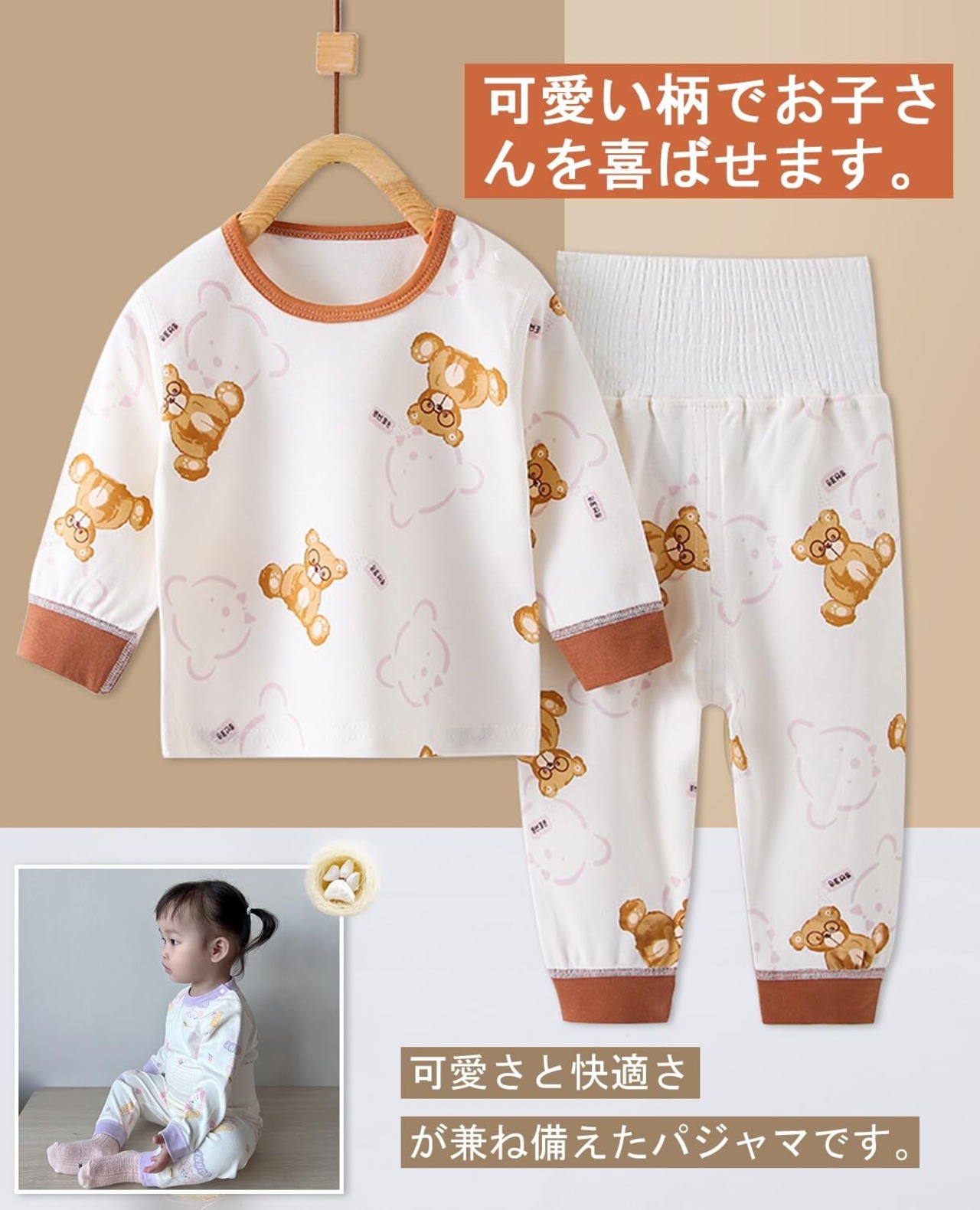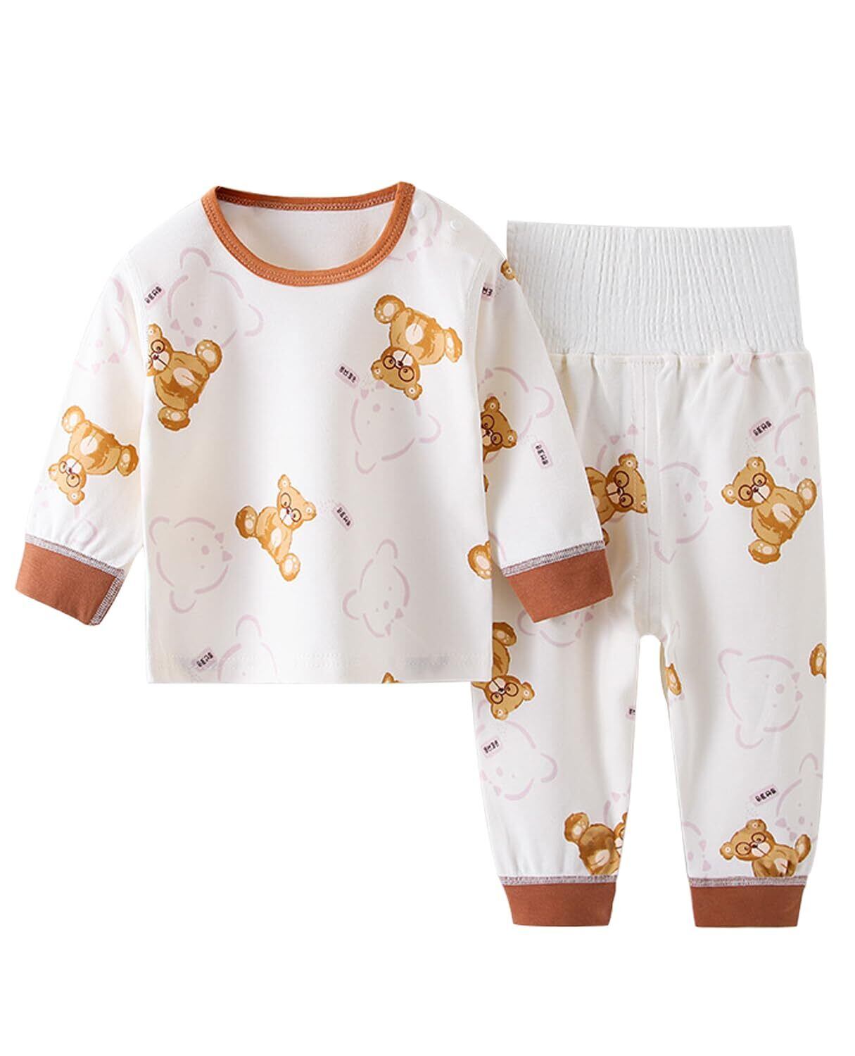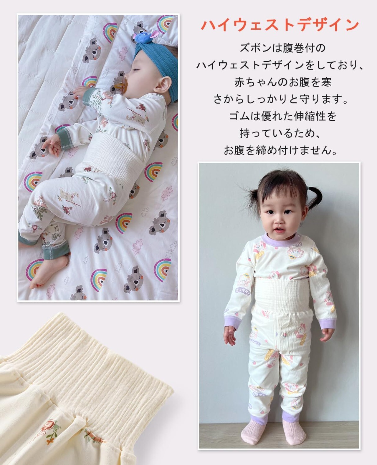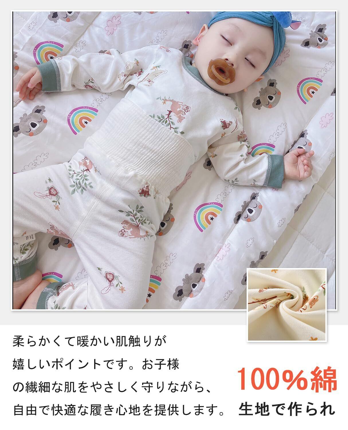 [Hapipana] ベビー パジャマ 上下セット 腹巻き付き 長袖 ミドル ハイネック ナイトウェア 子供 キッズ ベビー服 男の子 女の子 ルームウェア レギンス 綿100% 寝巻き 春 秋 冬 73 80 90 100cm