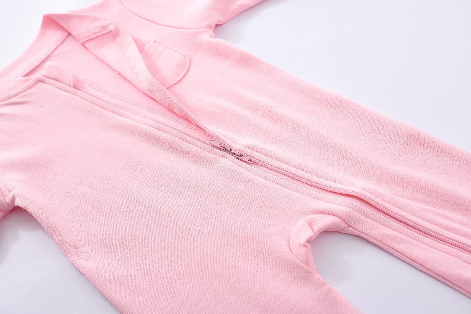 「ダブルジッパー!」首元から足元までにジッパーでとめている前開き仕様です。着脱はしやすいし、オムツの着替えも便利です。2wayジッパーで、オムツを着替え際には下からお腹までに開ければいいから、便利し保温もできました。そして、顎と首を保護する安全設計はジッパーで怪我を防げます。