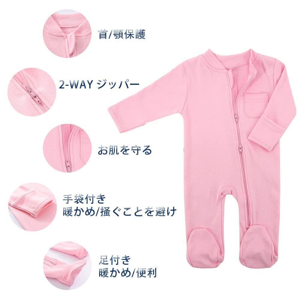 [KISBINI] ベビー服 ロンパース 長袖 カバーオール 綿 足つき 新生児肌着 前開き 赤ちゃん 出産祝い 春秋冬 ジッパー 3-6-9-12m