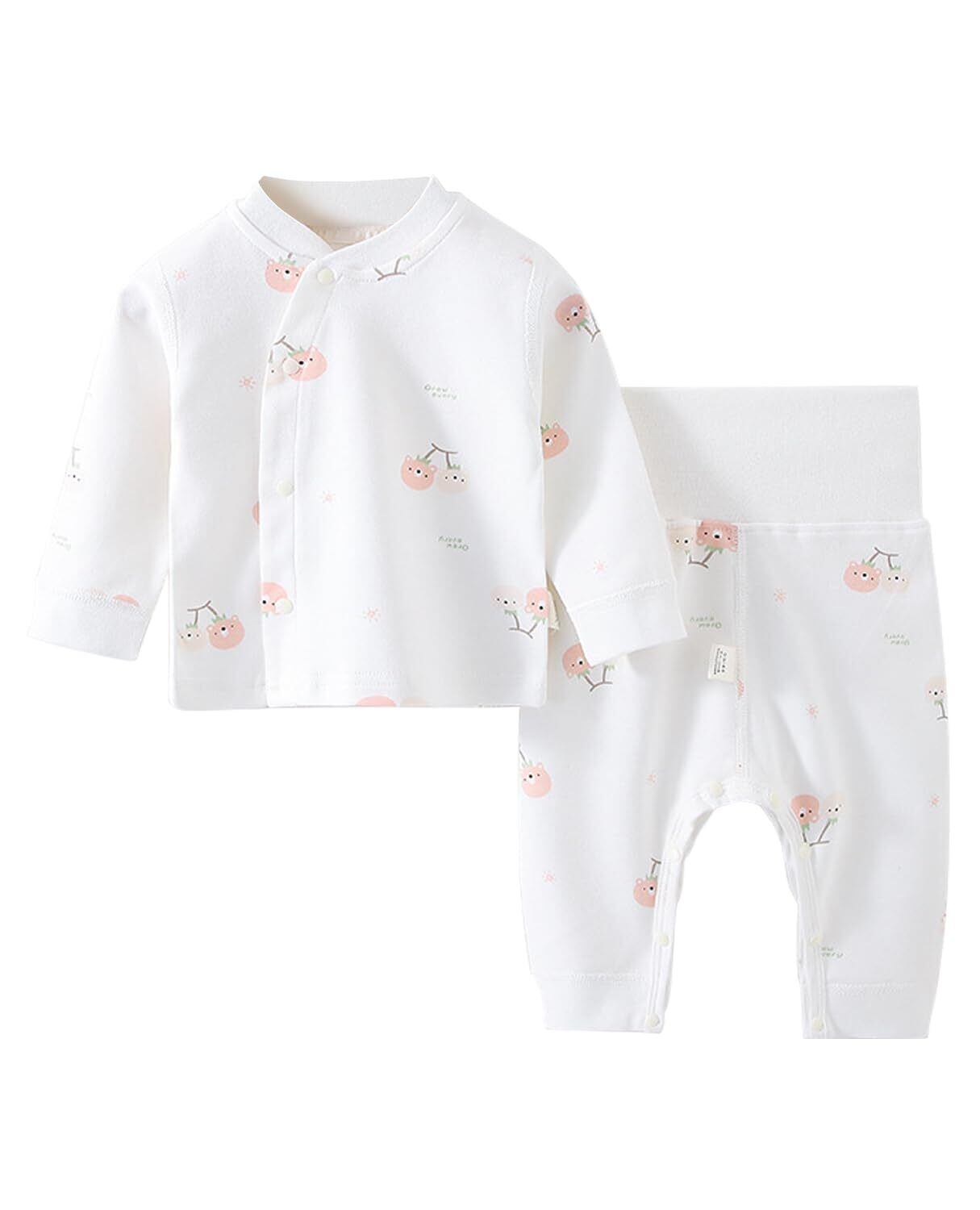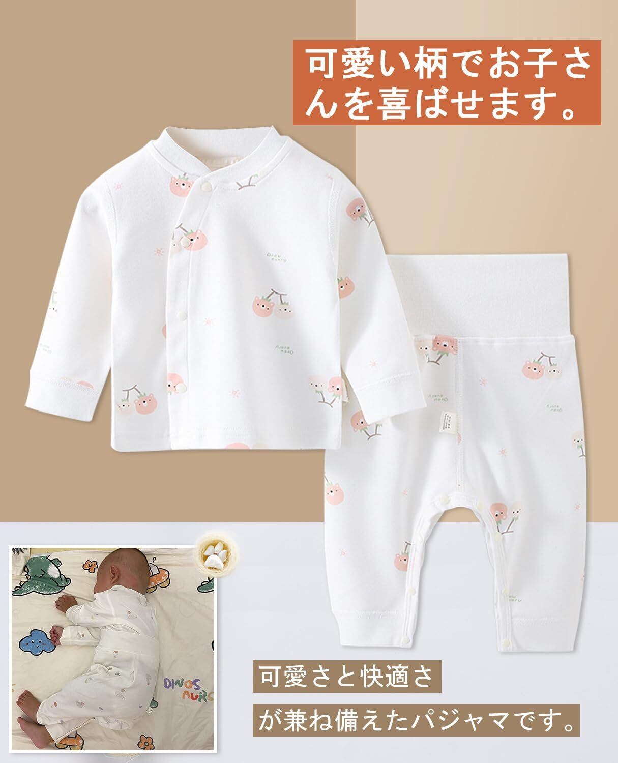 [Hapipana] ベビー服 腹巻き付き パジャマ 上下セット 前開き 綿100% ミドル ハイネック 長袖 ナイトウェア 子供 キッズ 男の子 女の子 ルームウェア 寝巻き 春 秋 冬 73 80 90cm