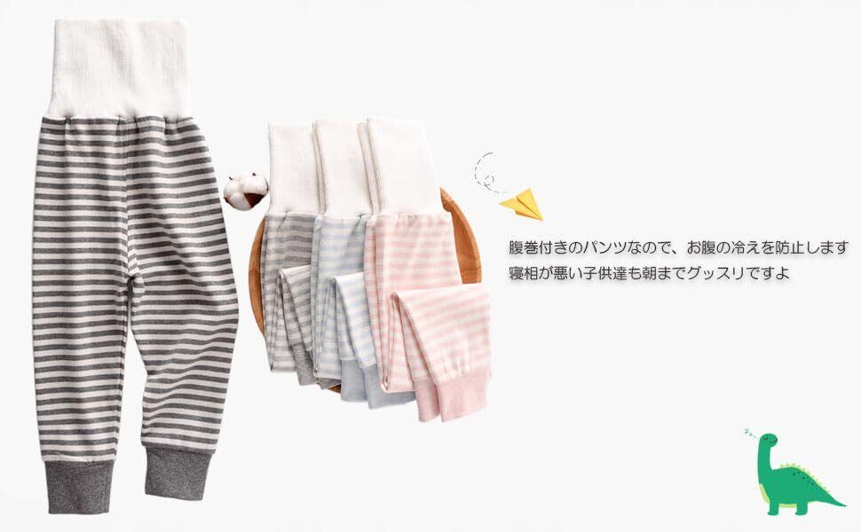 腹巻付きのパンツなので、お腹の冷えを防止します。寝相が悪い子供達も朝までグッスリですよ