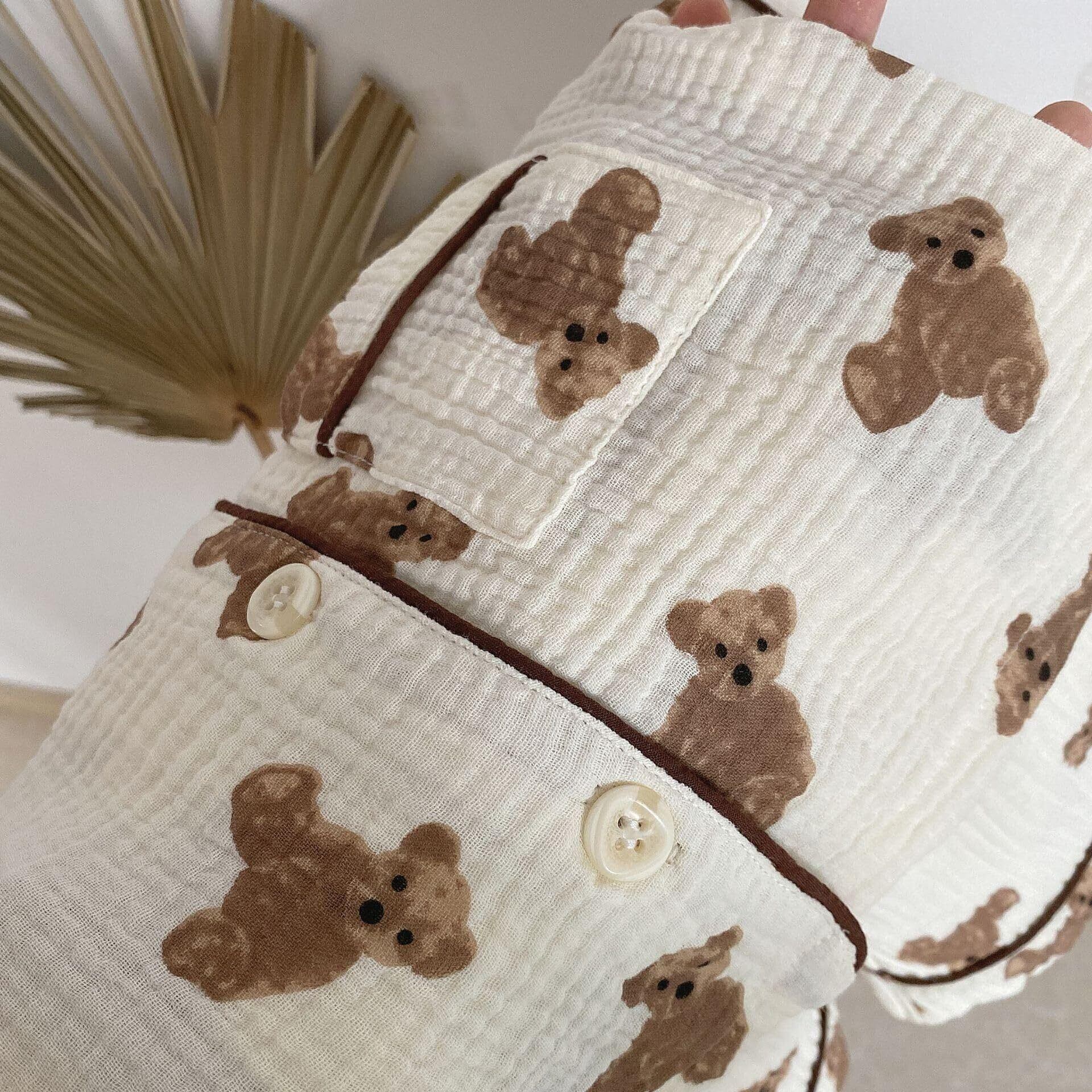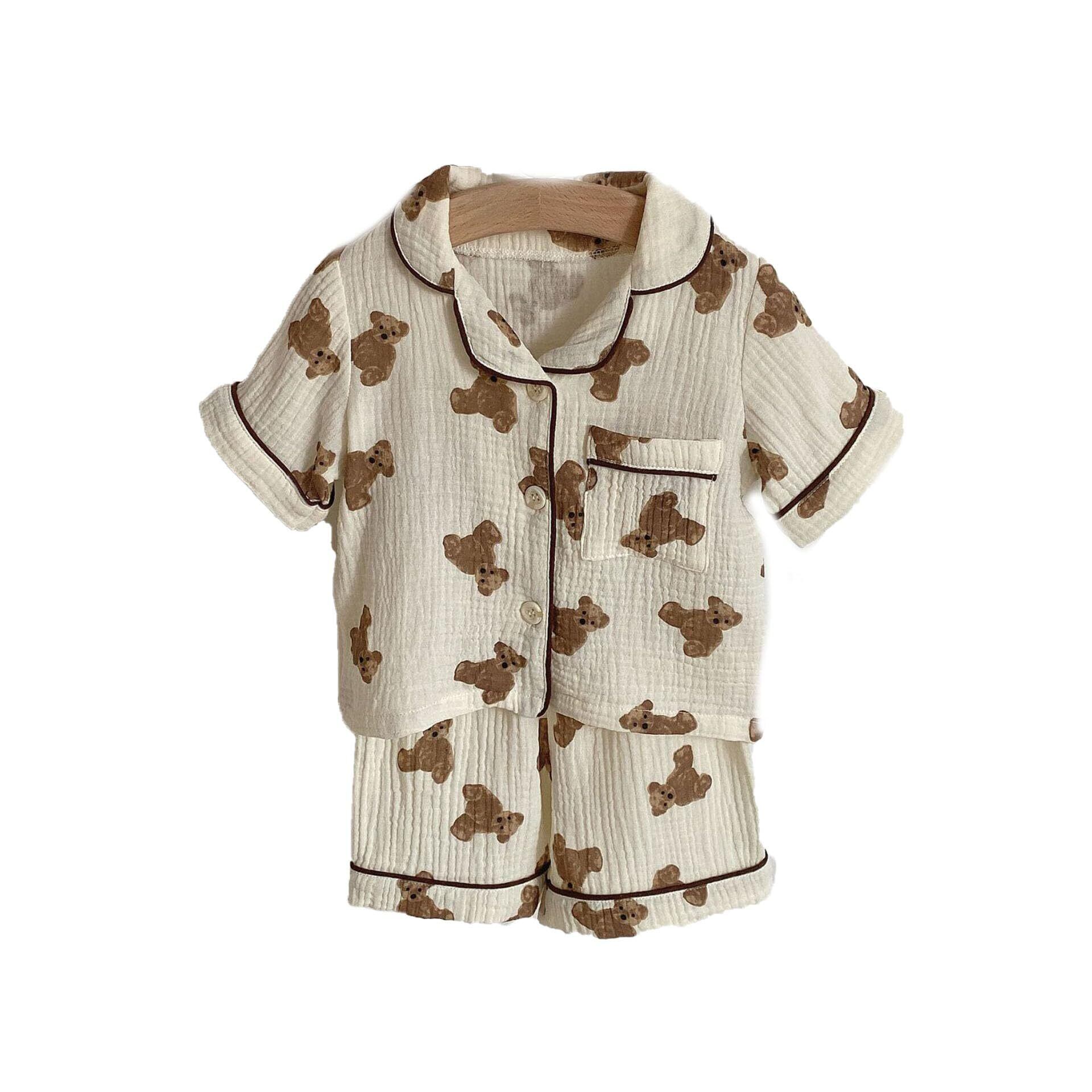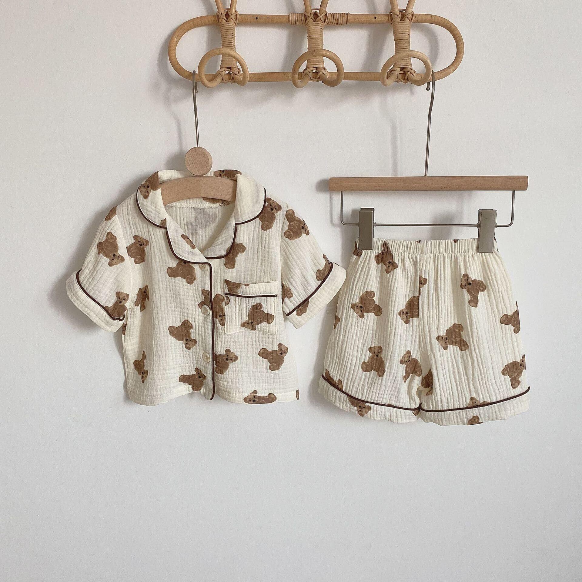 [SEIWARAKU] ベビー パジャマ 薄手 クマ柄 ガーゼ 綿100% 肌着 部屋着 ルームウェア 半袖 短パン 上下セット 春秋夏 女の子 男の子 プレゼント ギフト かわいい