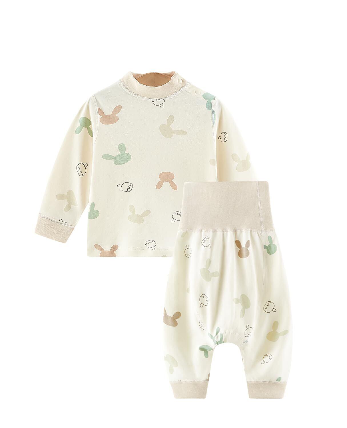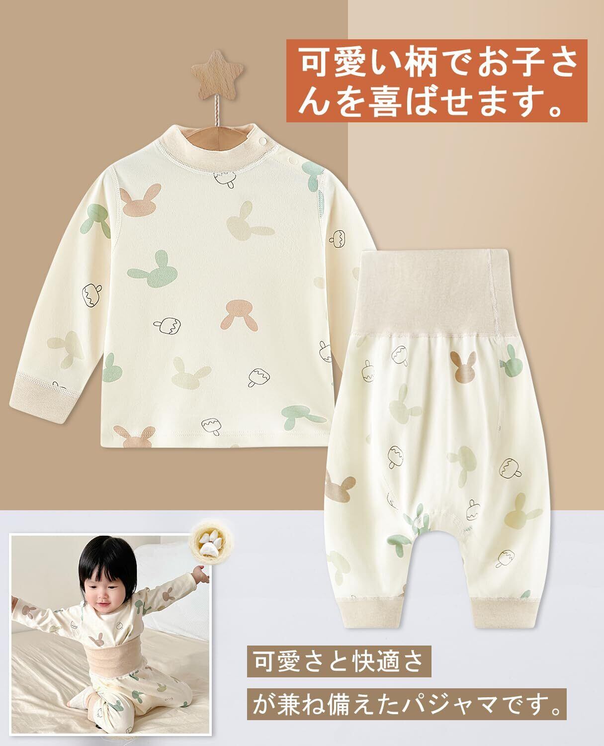 [Hapipana] 腹巻付き長袖パジャマ ベビー ミドル ルームウェア ハイネック ナイトウェア 子供 キッズ ベビー服 男の子 女の子 レギンス 綿100% 寝巻き 出産祝い プレゼント 80 90 100cm 春 秋 冬