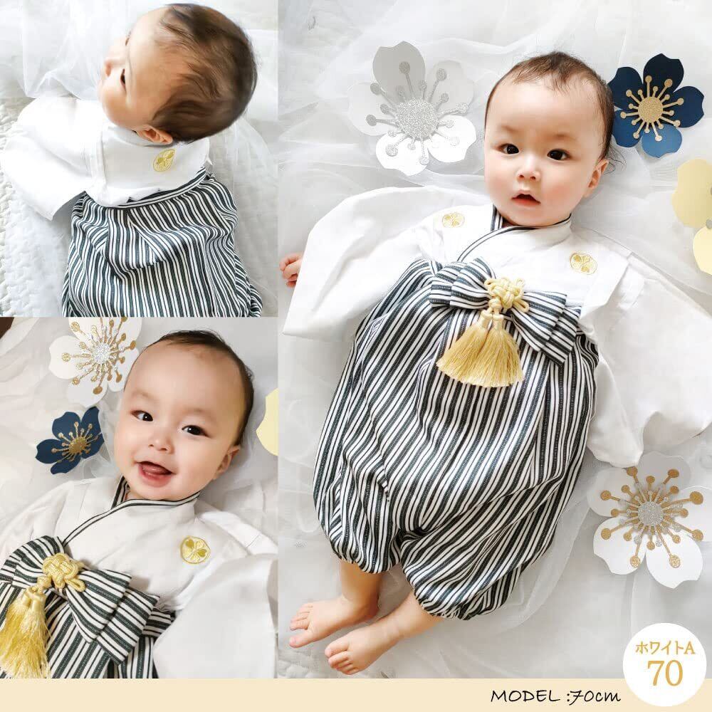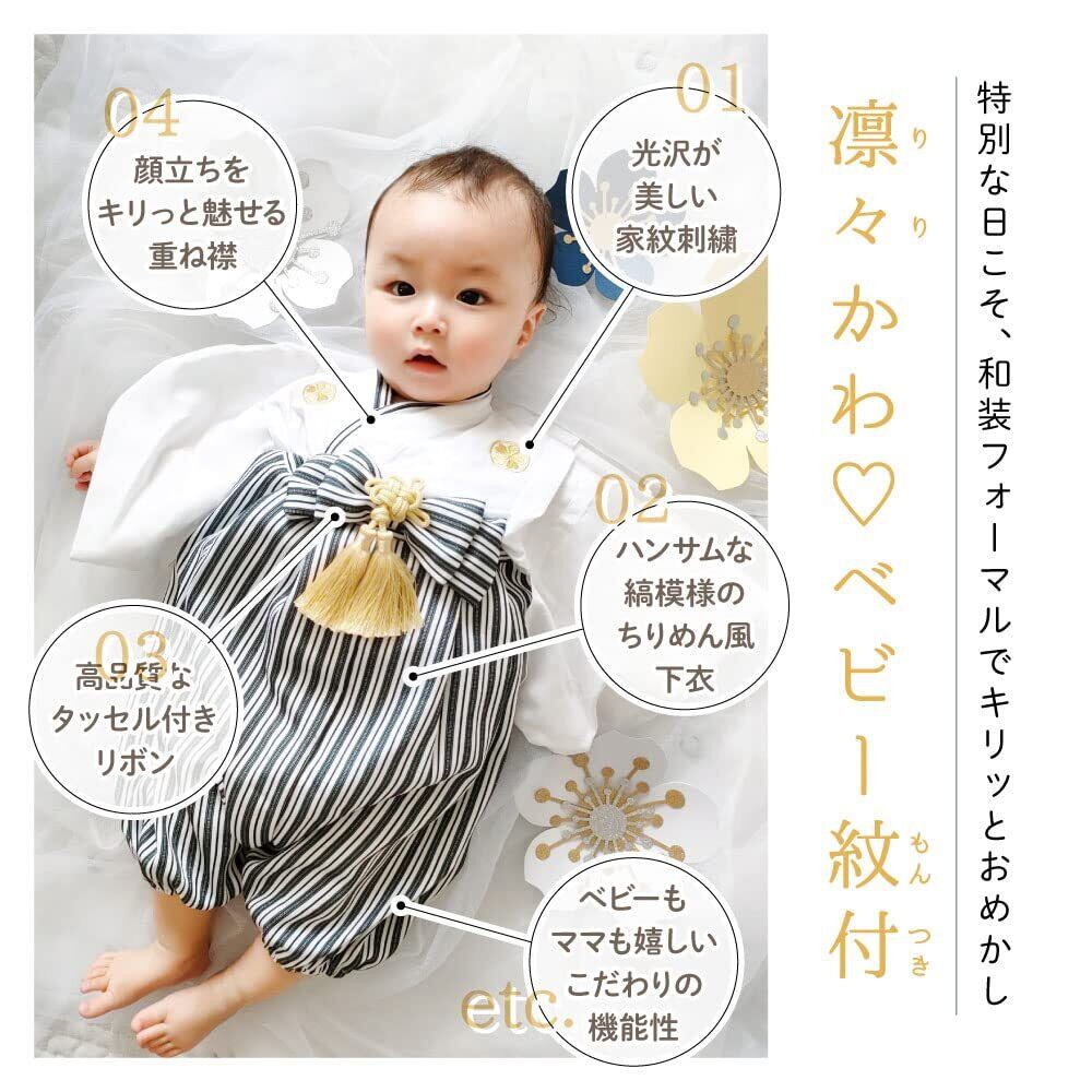 [regalo] ベビー 袴 2ピース 男の子 70~90cm ロンパース 紋付き 和装 フォーマル 赤ちゃん お宮参り 百日祝 お食い初め 初節句