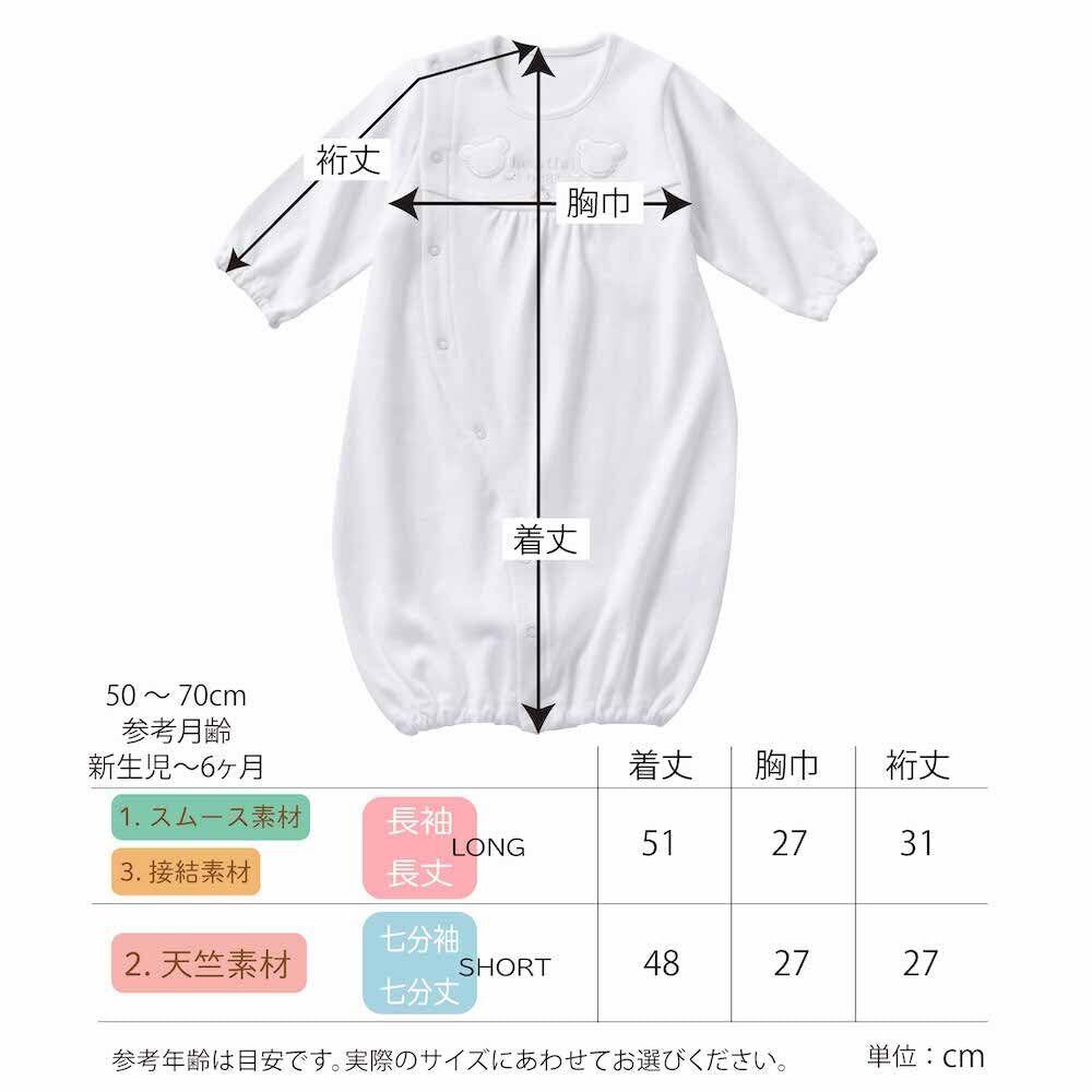 [クリーム デ ココ] 白いクマさん の ツーウェイオール [股スナップ付け替え/2way] セレモニー ベビードレス 男の子 女の子 新生児 赤ちゃん あったか 涼しい ベビー服 出産 退院 お宮参り 50-70cm 31501_31502_31503