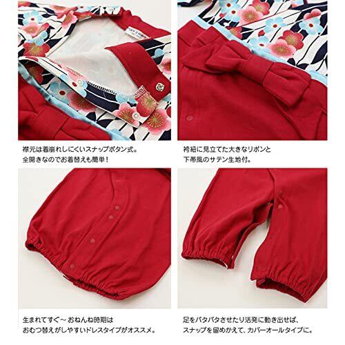 ベビー 新生児 ベビー服 ツーウェイオール 兼用ドレス セレモニードレス 袴風 女の子 カバーオール 50-70cm