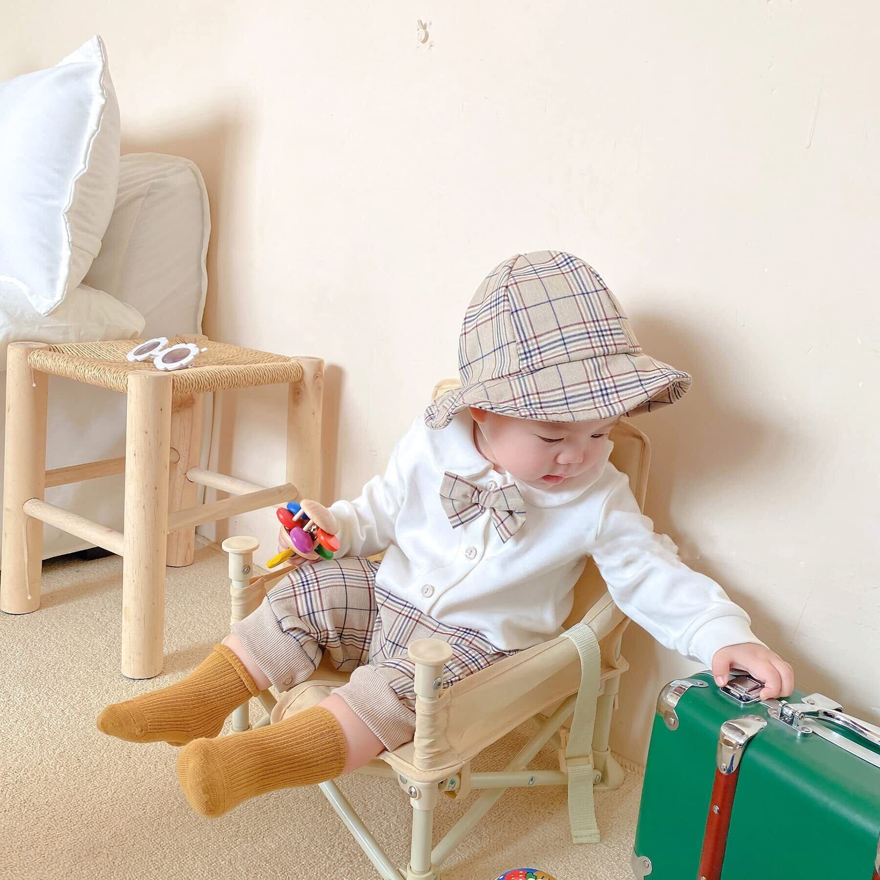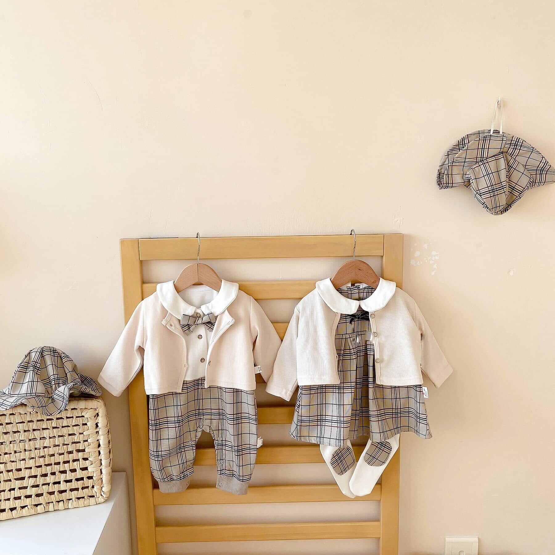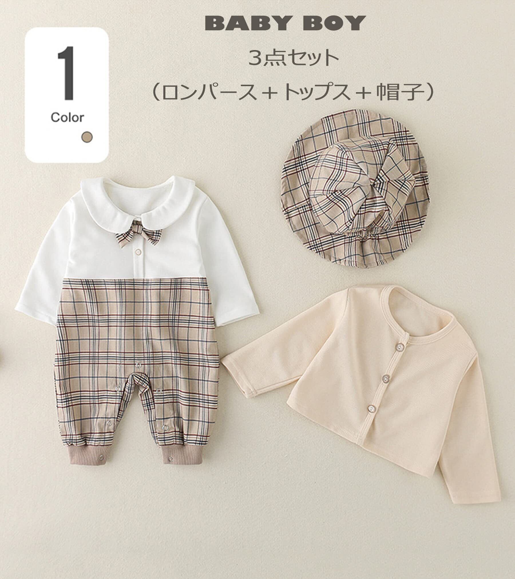 [SLINX] ベビー 男の子 女の子 ワンピース ロンパース フォーマル 帽子付き ボーイズ 赤ちゃん 長袖 ロンパース 蝶ネクタイ チェック柄 お出かけ フォーマル 結婚式 パーティー イギリス風 結婚式 発表会 セット