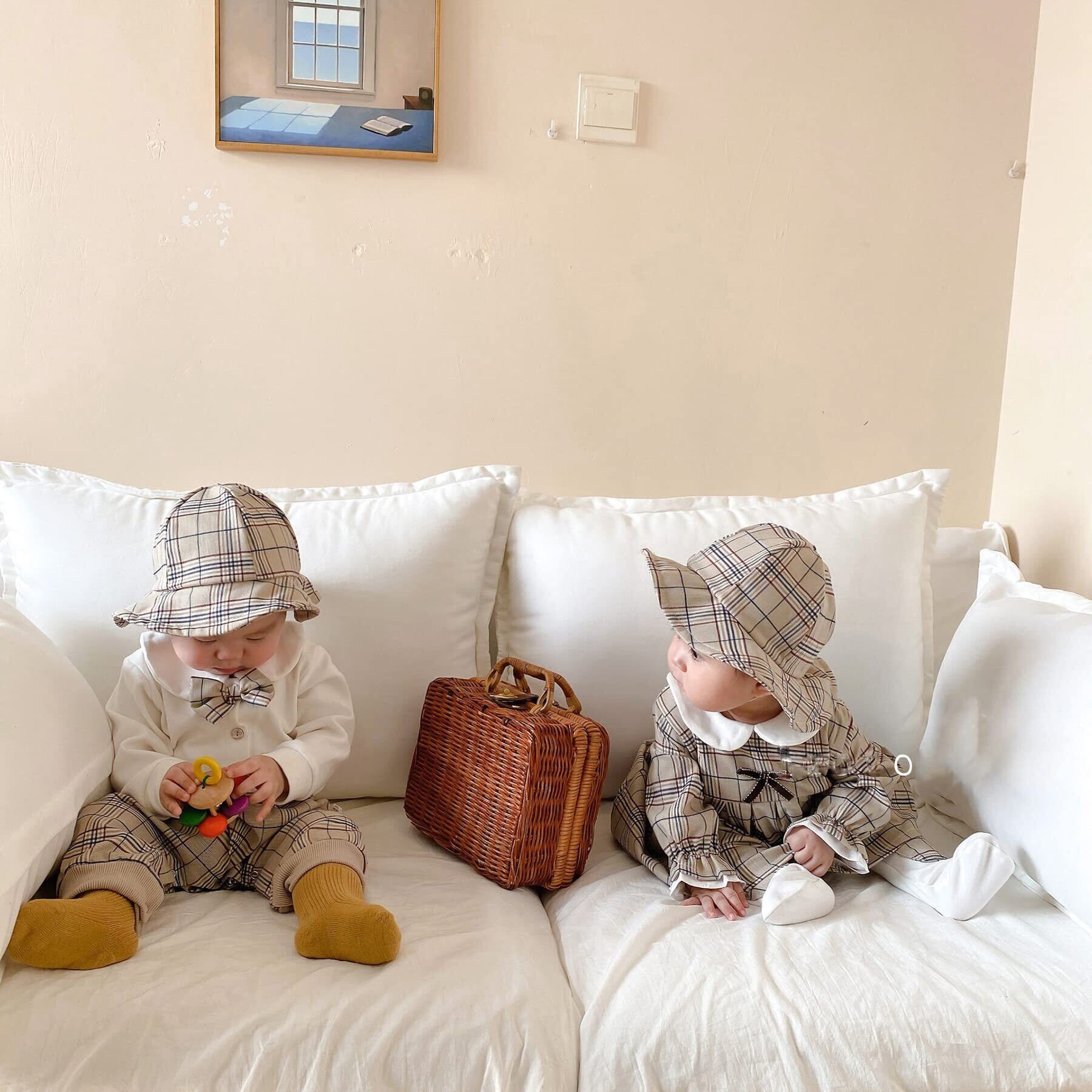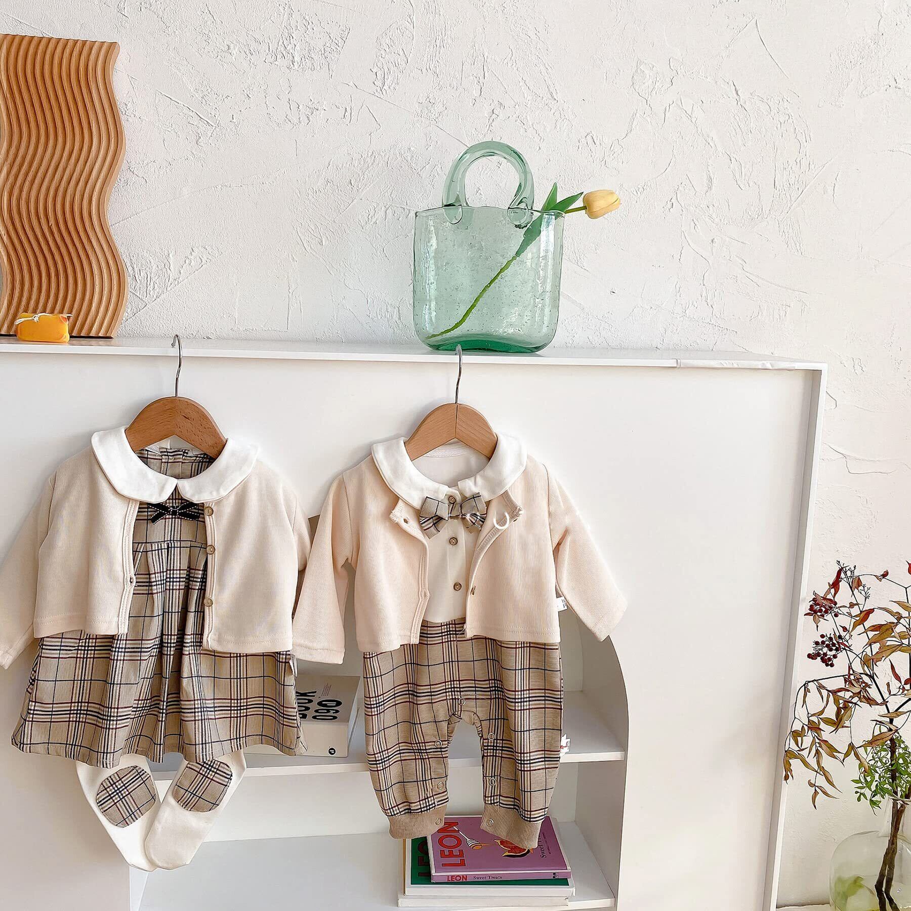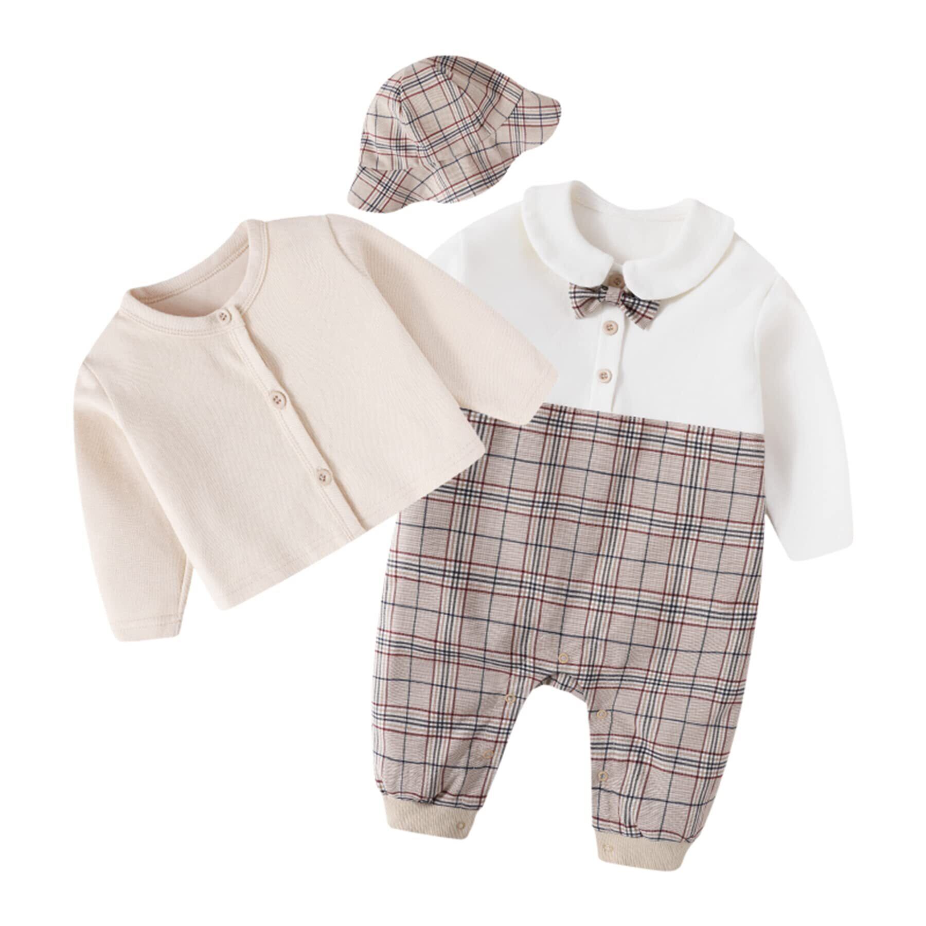 [SLINX] ベビー 男の子 女の子 ワンピース ロンパース フォーマル 帽子付き ボーイズ 赤ちゃん 長袖 ロンパース 蝶ネクタイ チェック柄 お出かけ フォーマル 結婚式 パーティー イギリス風 結婚式 発表会 セット