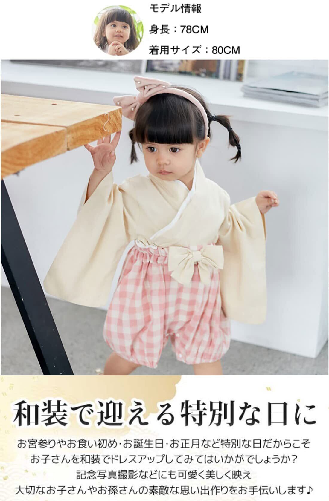 赤ちゃんに着せるだけでとっても可愛い和装姿に大変身!お食い初め、お宮参り、お正月、初節句、お祭りなどお子様の特別な日の写真撮影にぴったりのアイテムです。