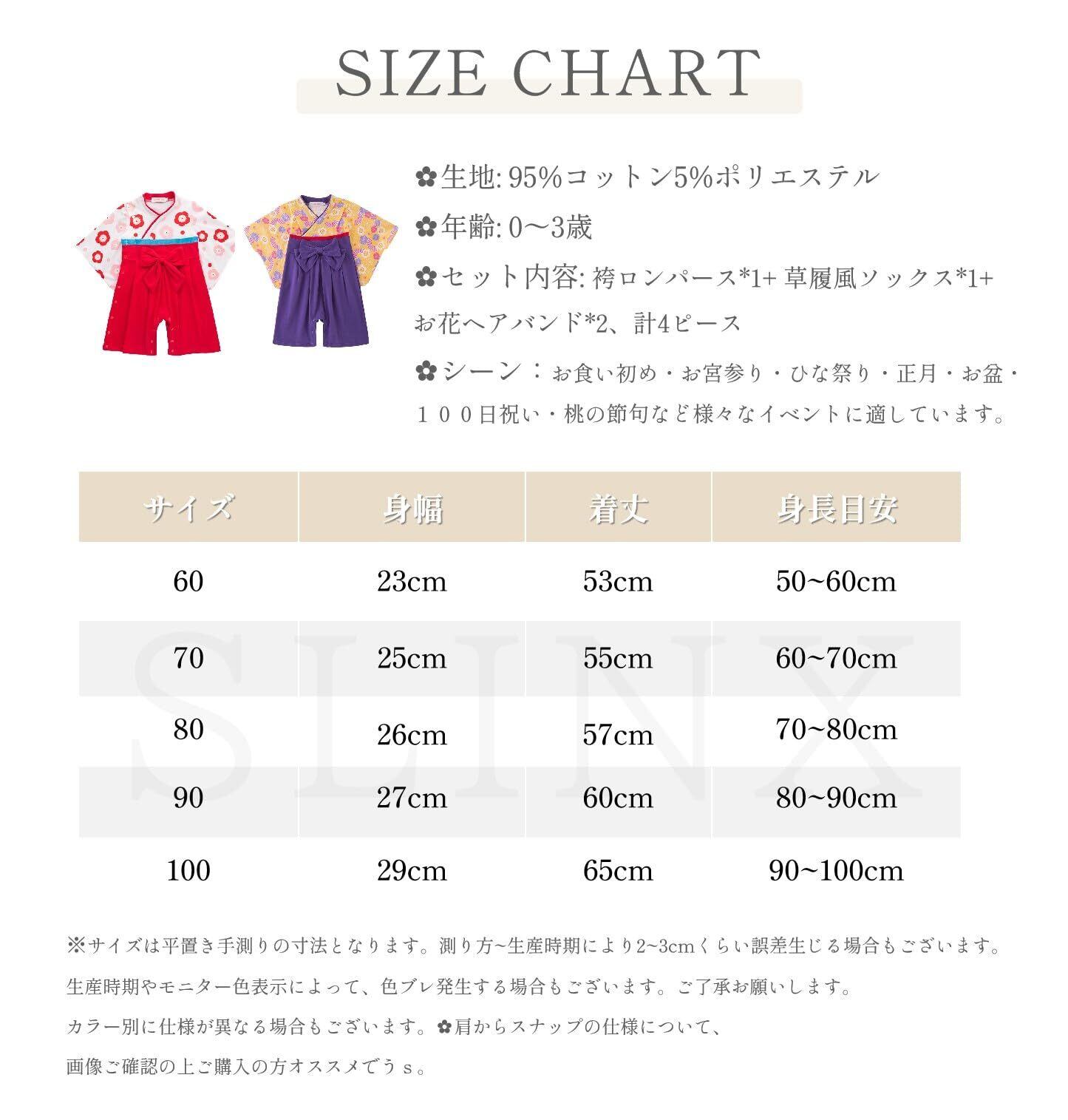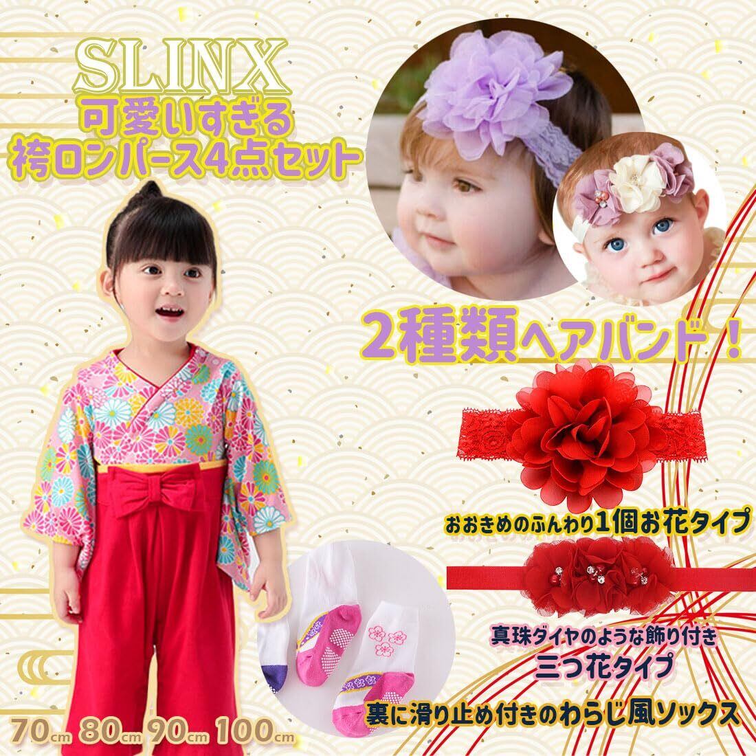 [SLINX] 女の子 ベビー服 フォーマル 浴衣 着物 和装 4点セット 袴セット 初節句 記念撮影 雛祭り 靴下付き ベビー キッズ 袴風 出産祝い ベビー袴 HF36T
