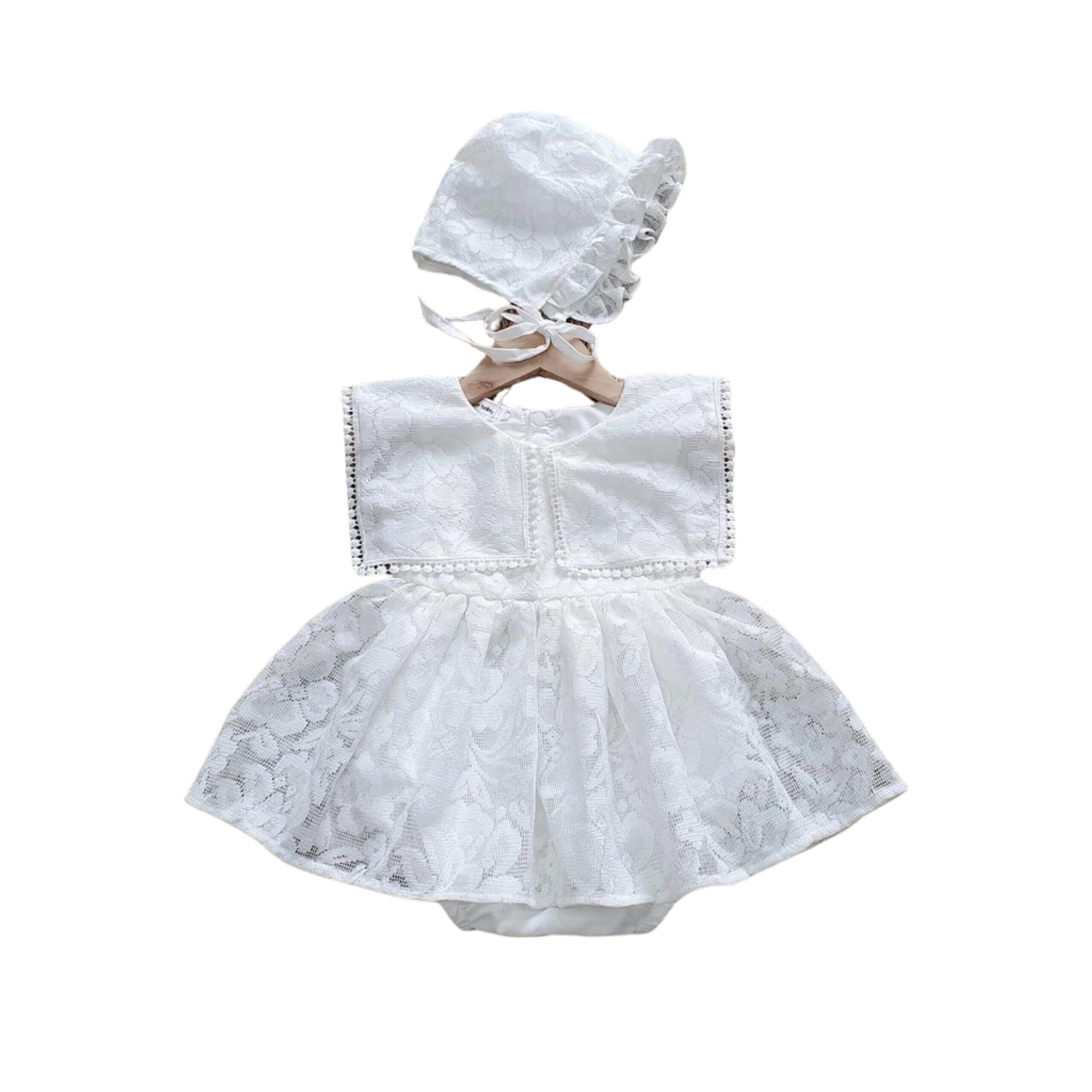 [Anmystore] ベビードレス お食い初め お宮参り 女の子 退院着 ロンパース ワンピース 結婚式 セレモニードレス チュール, ホワイト
