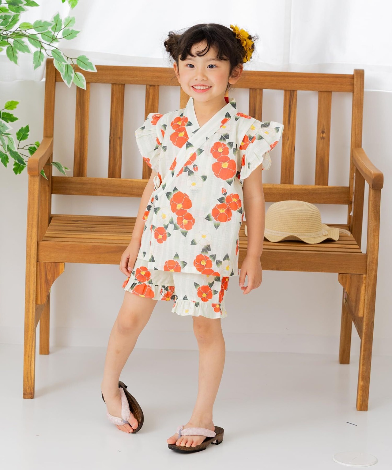 [chil2] 子供 甚平 セット セパレート 女の子 浴衣 キッズ ベビー服 上下セット フリル 90 100 110 120 130 140cm