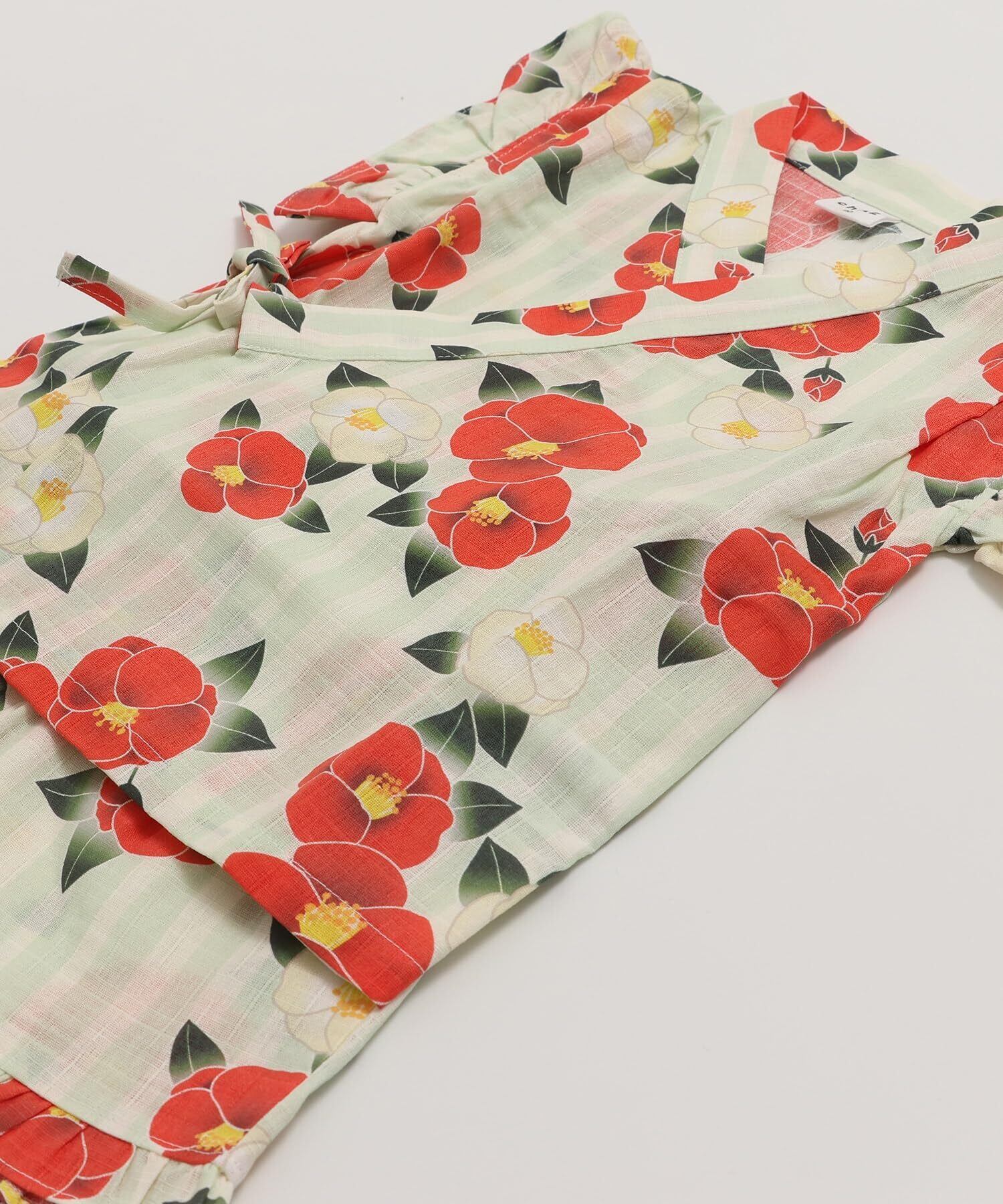 肩と裾部分にあしらったフリルが従来の甚平にキュートなアクセントをプラス!