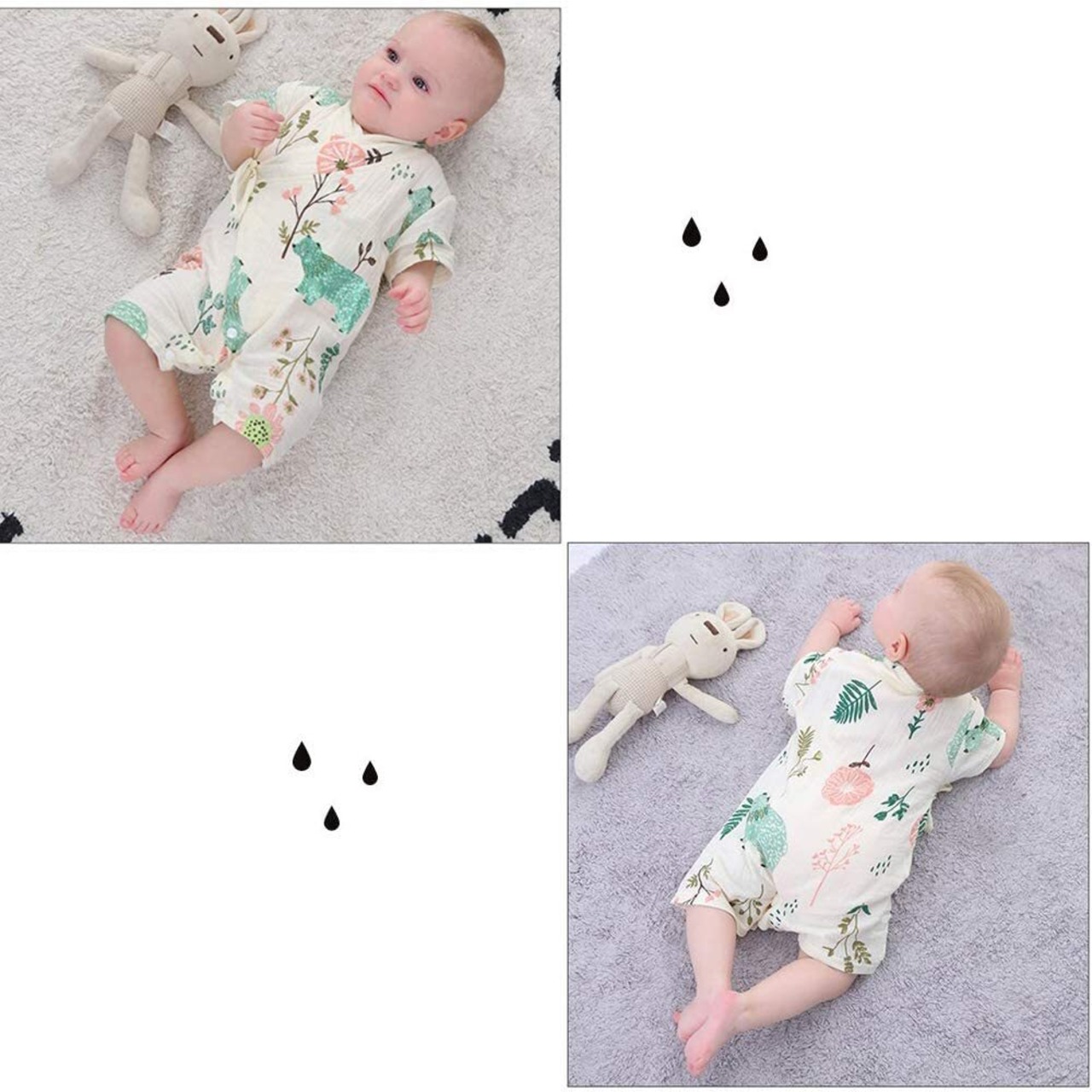 【可愛いベビーロンパースが登場!】綿100%、肌触りが気持ちいいコットン素材。柔軟性、通気性に優れ、夏の季節に適用。