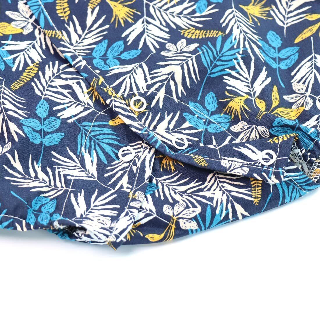 股の部分はスナップボタン、オムツ替えもラクラクできるのでママも安心です
