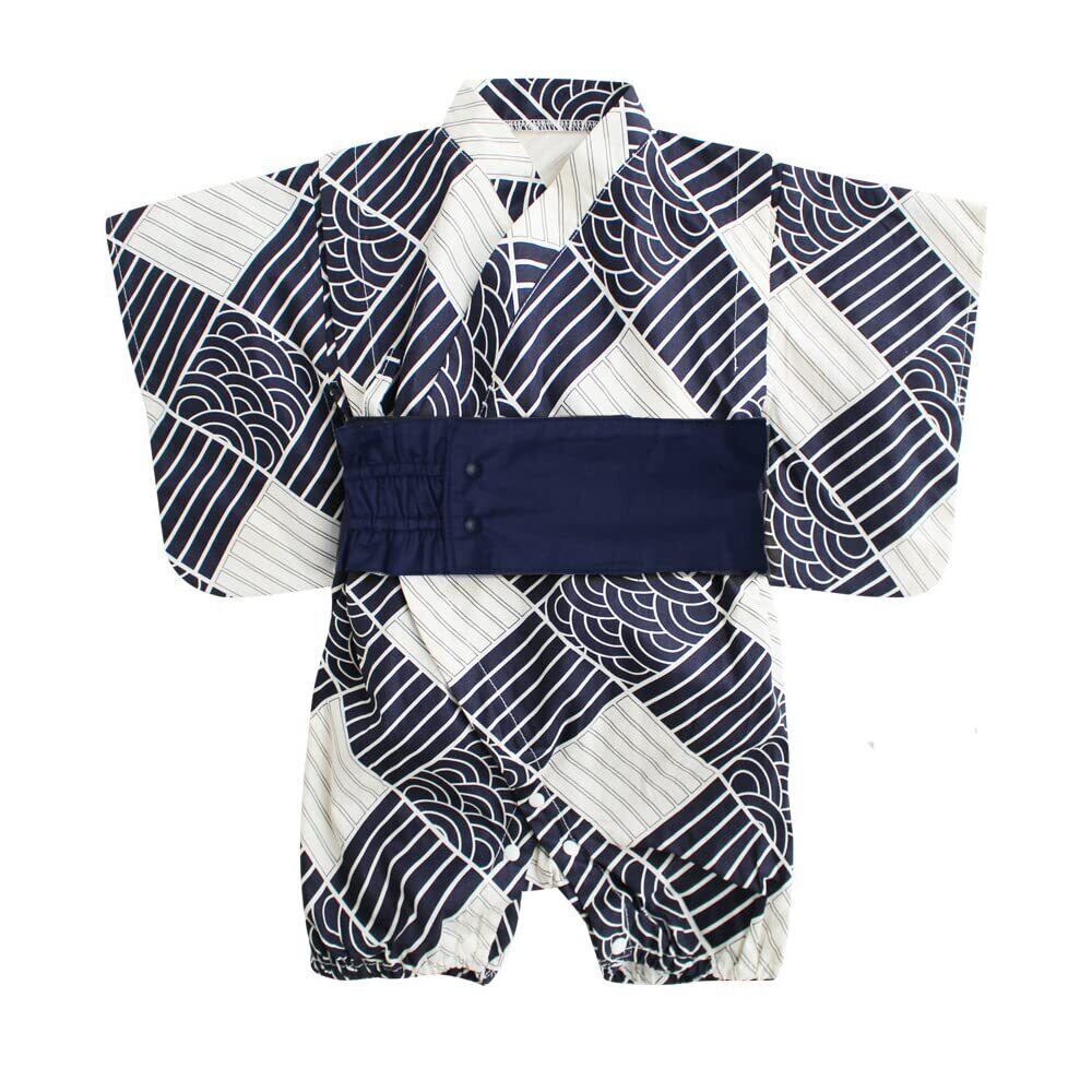 [WonKin] 浴衣 甚平 男の子 兵児帯付 ベビー服 半袖 ロンパース カバーオール 前開き 着物 和風 斜めレースアップ ベビー フォマール お宮参り 誕生日 記念日 出産祝い