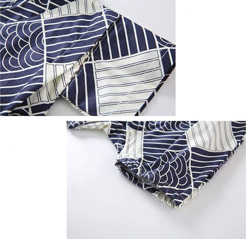 【浴衣 甚平】斜めレースアップの設計、レトロでスタイリッシュに見える。下半身がスナップある、着替えやオムツ交換がとても楽です。