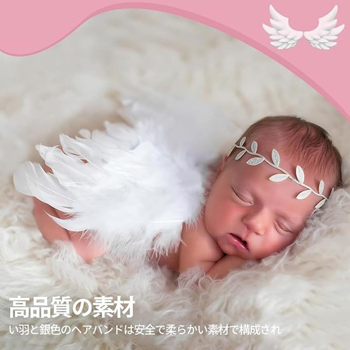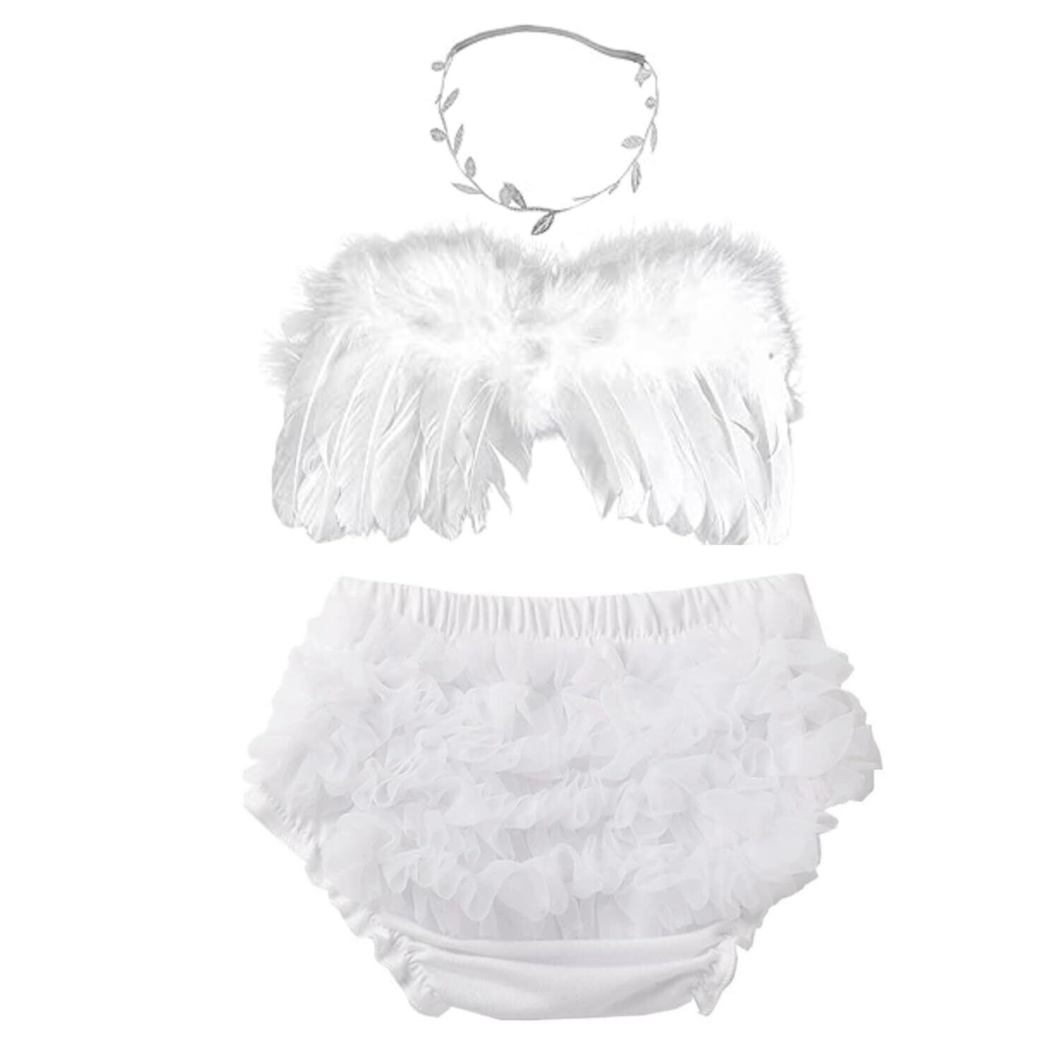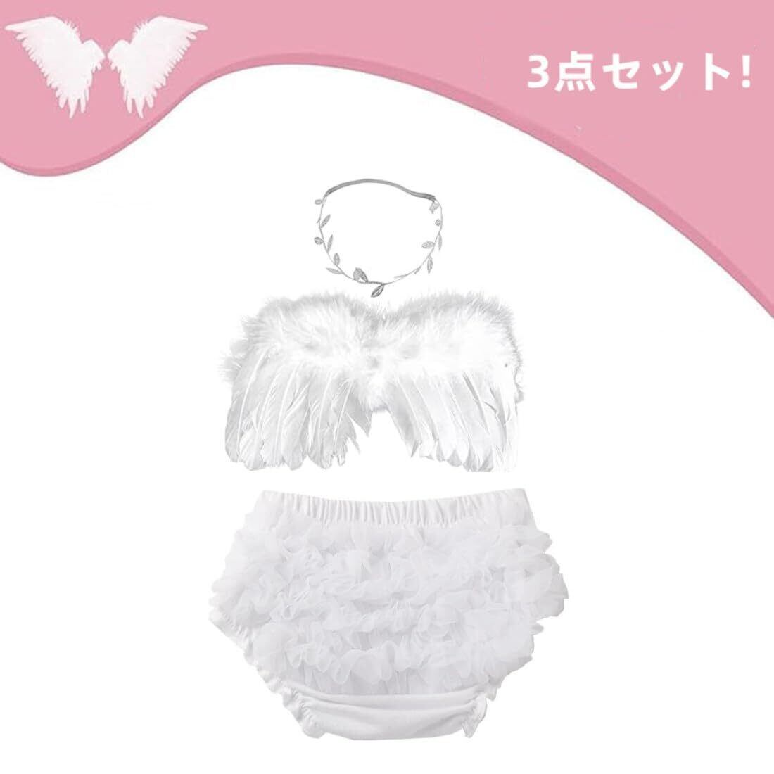 【数量限定】[KAWAJP] 天使コスチューム 3点セット! 百日祝いセット ニューボーンフォト 衣装 ニューボーンフォト 赤ちゃん 羽 オムツカバーセット(2-3日の配達)