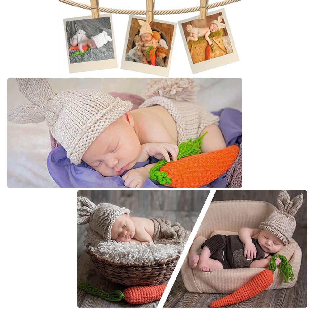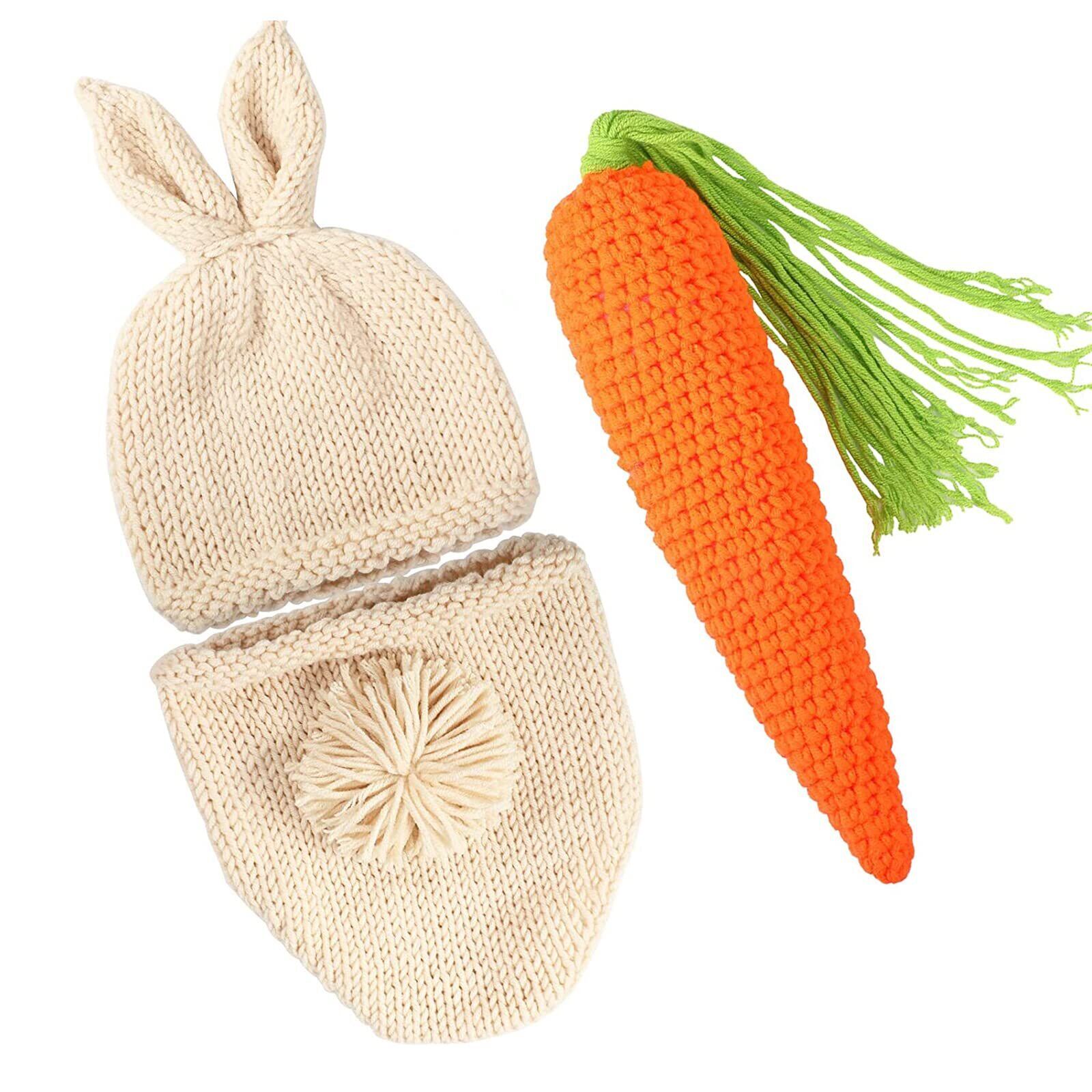 LIKENNY ウサギ ニット帽セット 寝相アート衣装 100日祝い ベビーコスチューム 写真を撮る道具 出産祝い バースデー 記念撮影 写真を撮る道具 可愛い 毛糸 手編み 男女共用 (3点セット)